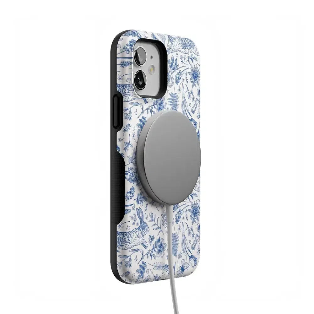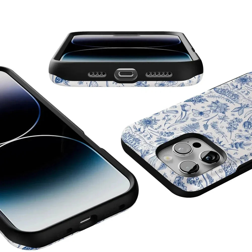 Meet the Hop & Bloom Bunny Toile Case. your new fave for adding a splash of whimsy to your tech game! This case. featuring adorable bunnies and blooming florals. is perfect for those who love a blend of vintage charm and modern chic. or a touch of festive flair for the Easter holiday. Protect your phone in style and hop into a world of cuteness overload!