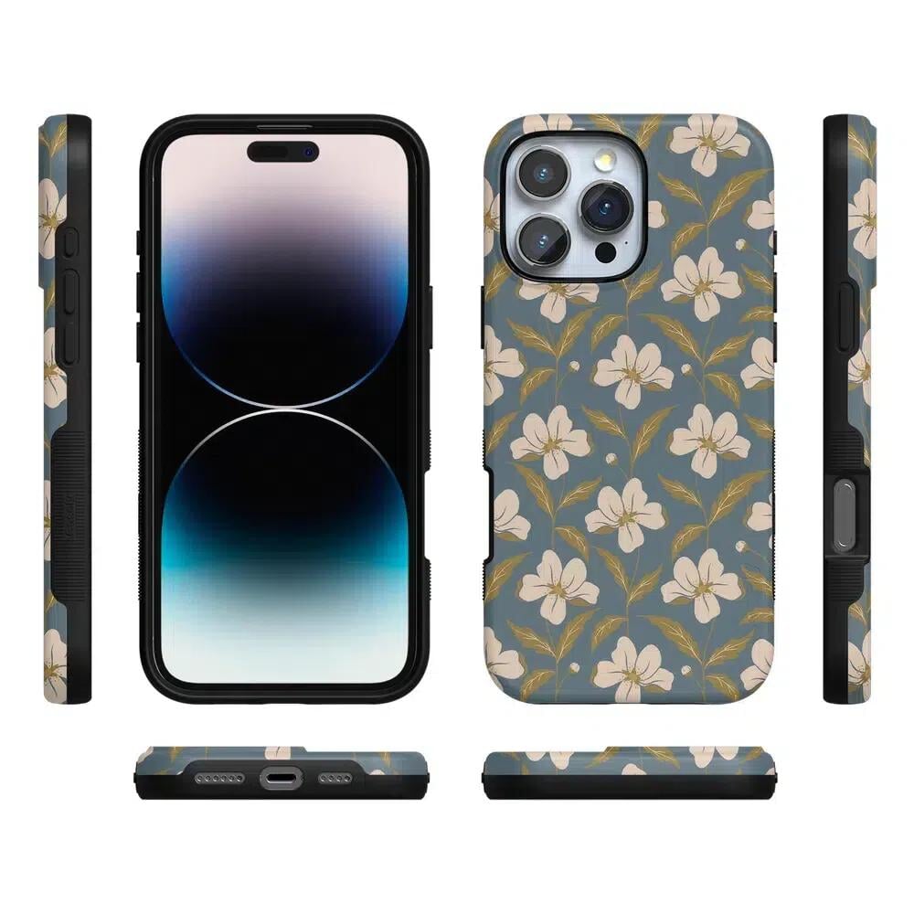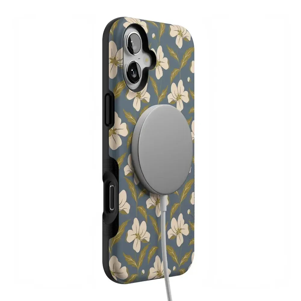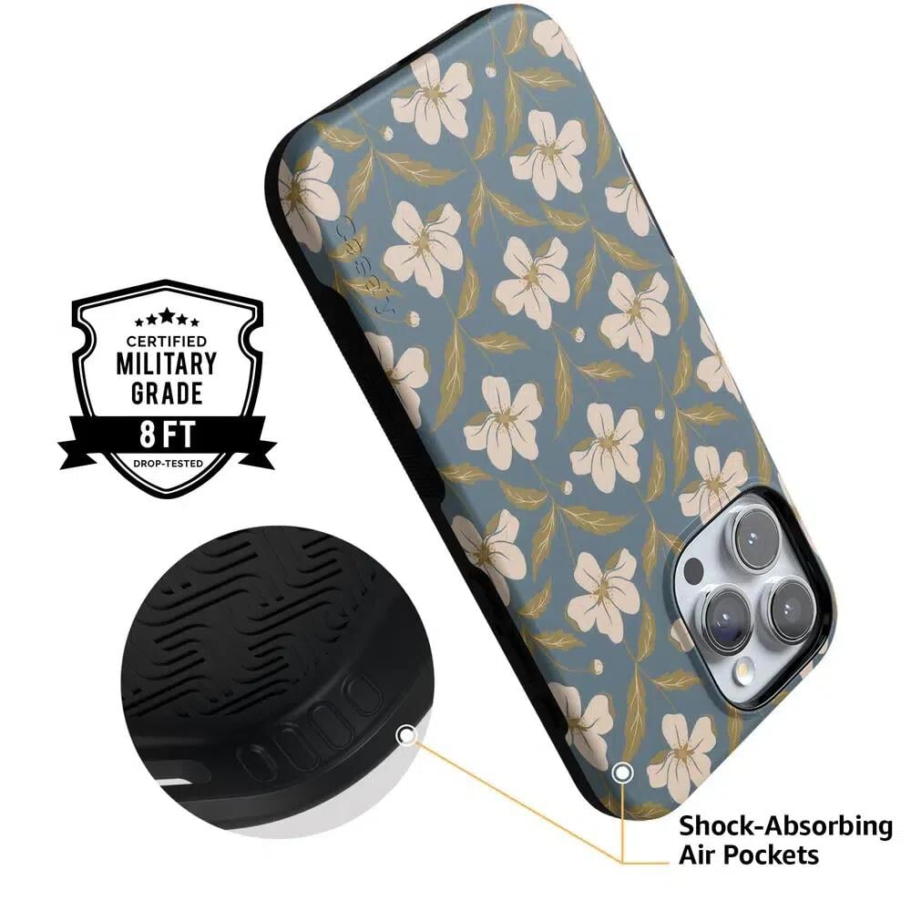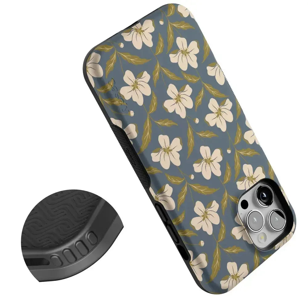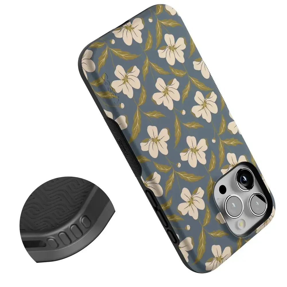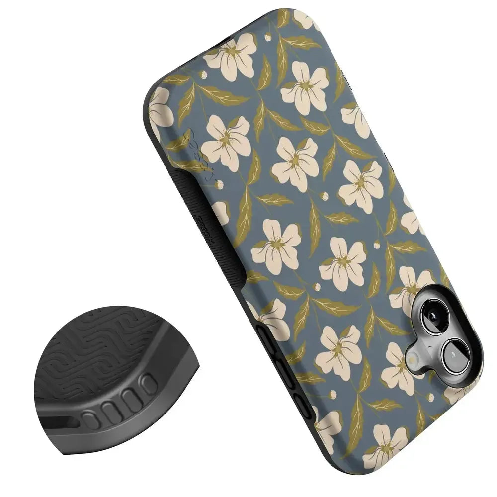 PSA: You can buy him flowers. The Lei'd Back phone case from the Boyfriend Collection is a modern take on a vintage classic. inspired by retro Hawaiian shirts and relaxed summer style. With a slate blue base and soft neutral floral blooms. this design is bold without being loud—perfect for guys who want something different but effortless.