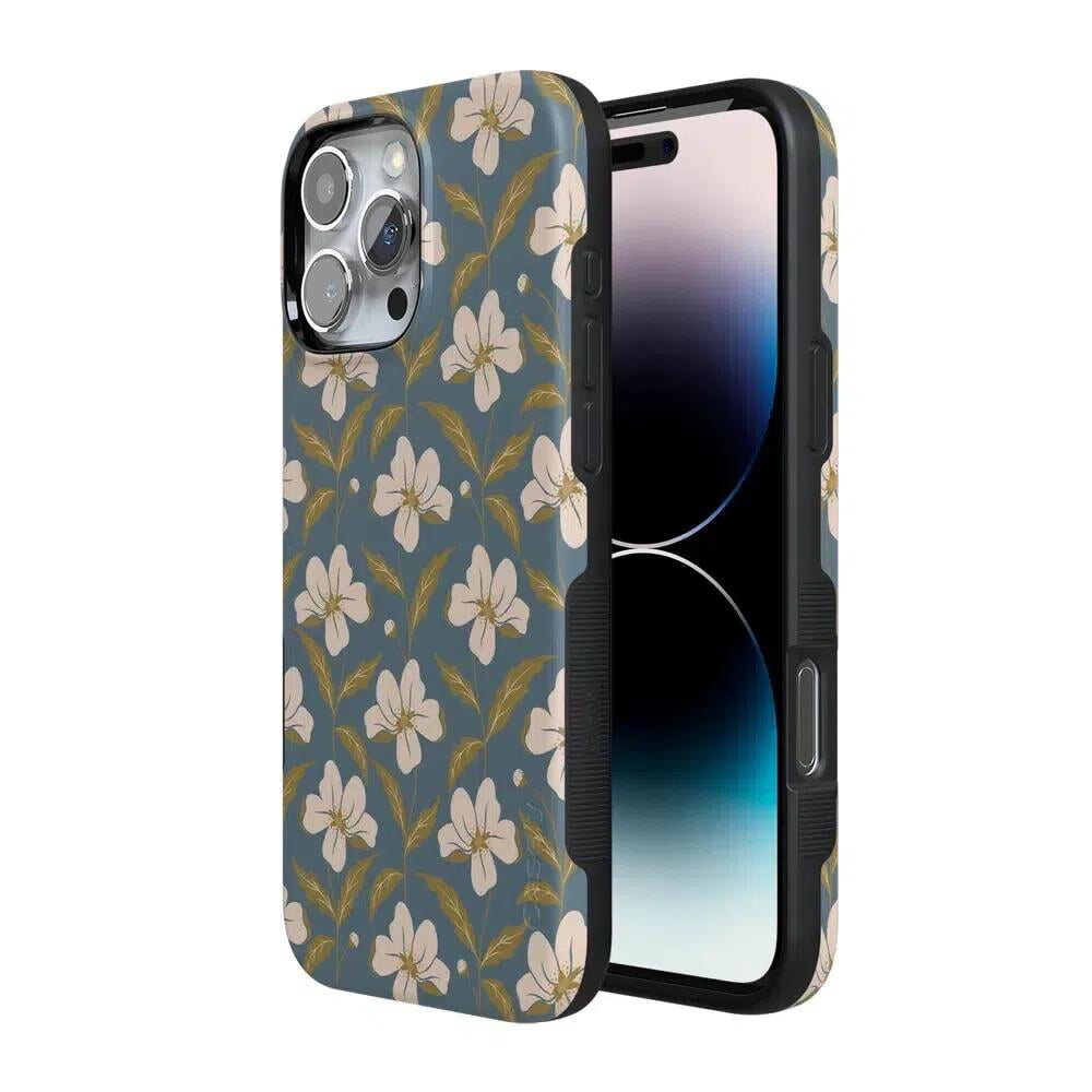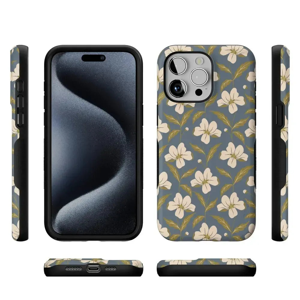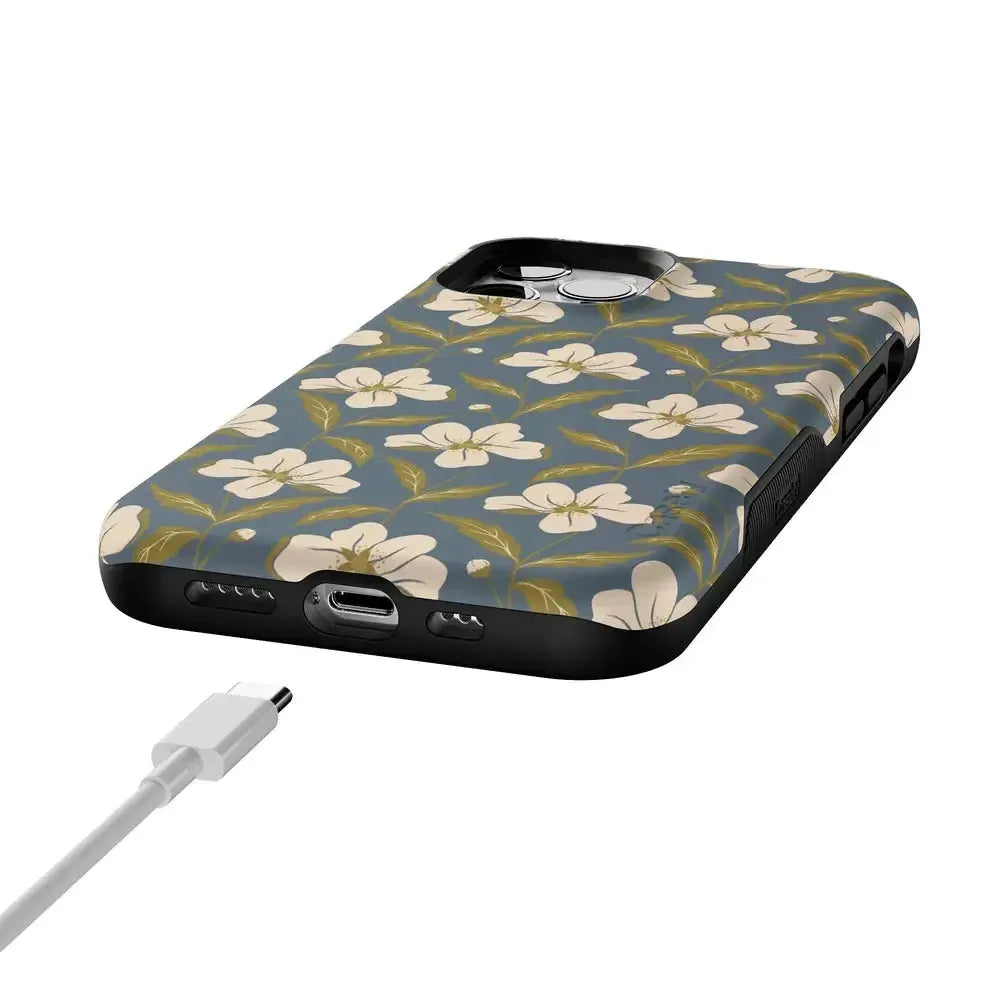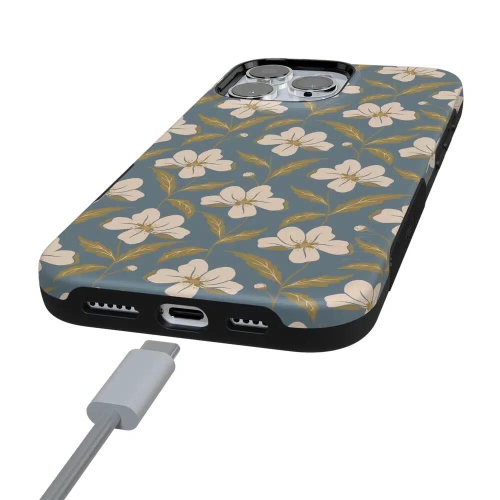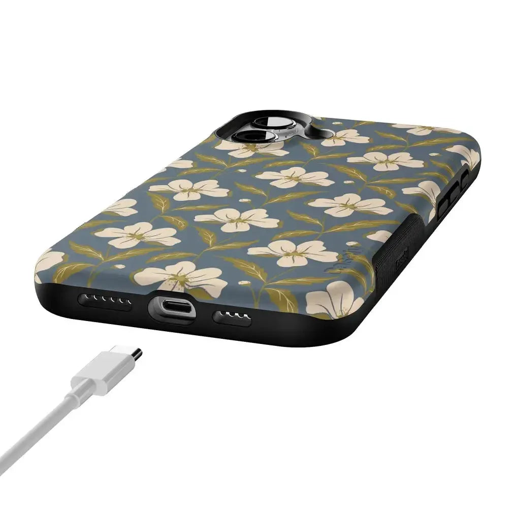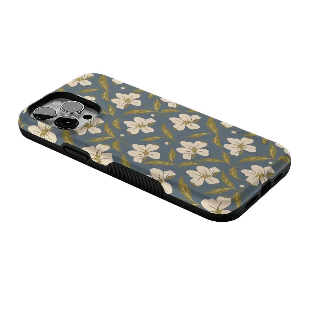 PSA: You can buy him flowers. The Lei'd Back phone case from the Boyfriend Collection is a modern take on a vintage classic. inspired by retro Hawaiian shirts and relaxed summer style. With a slate blue base and soft neutral floral blooms. this design is bold without being loud—perfect for guys who want something different but effortless.