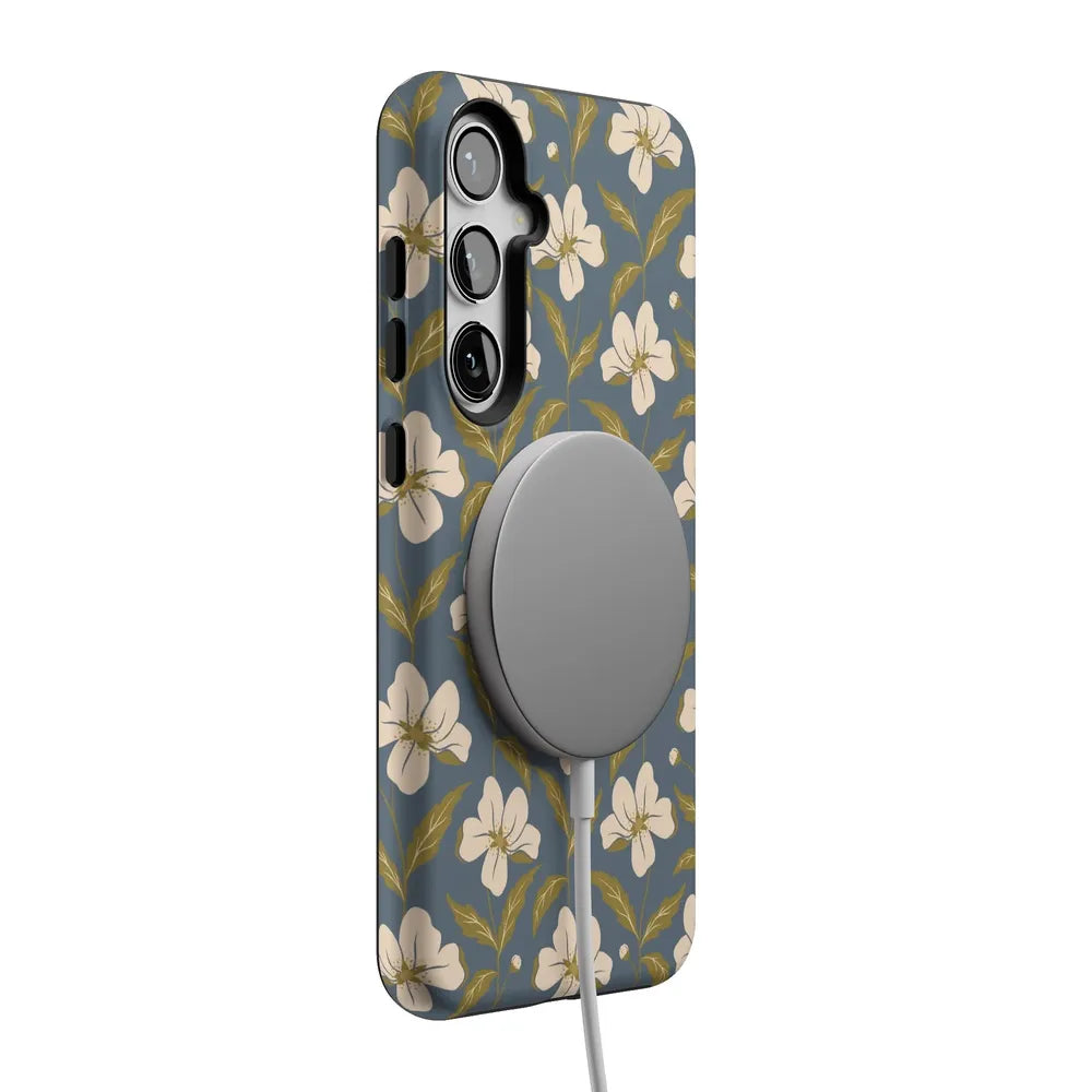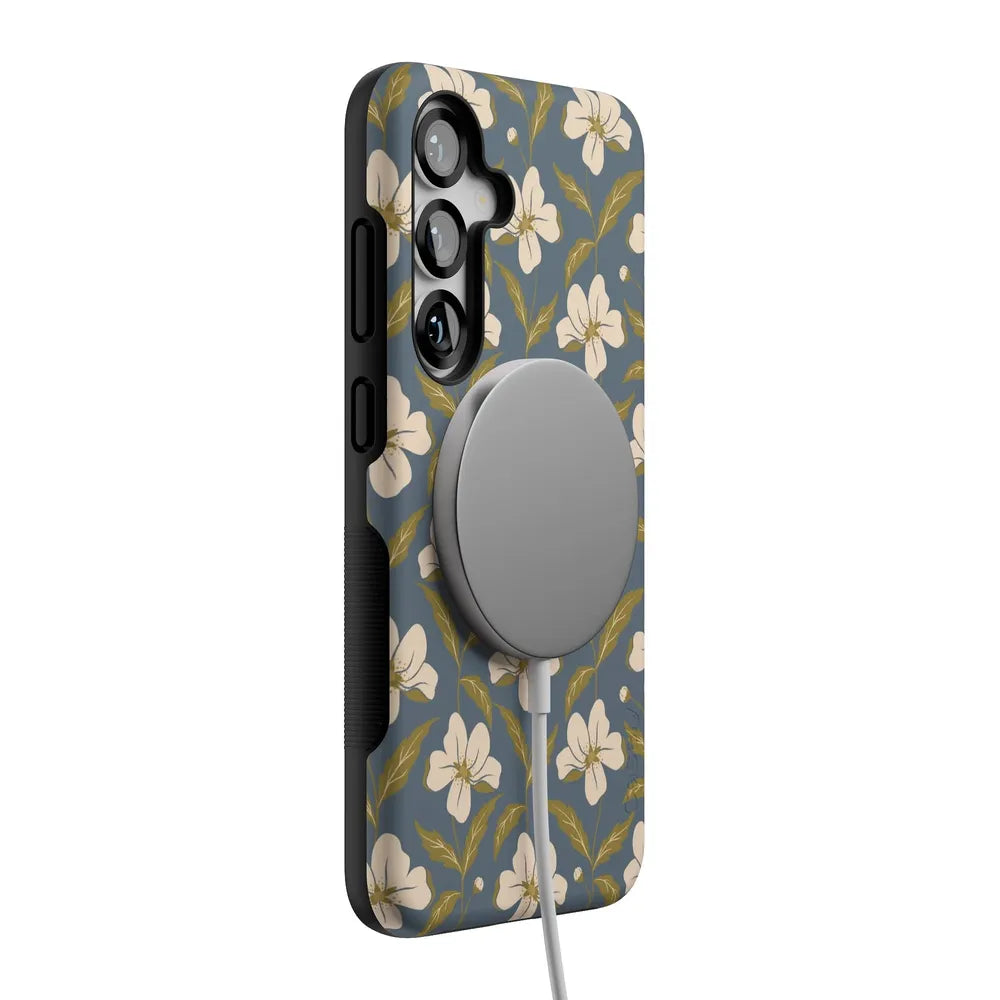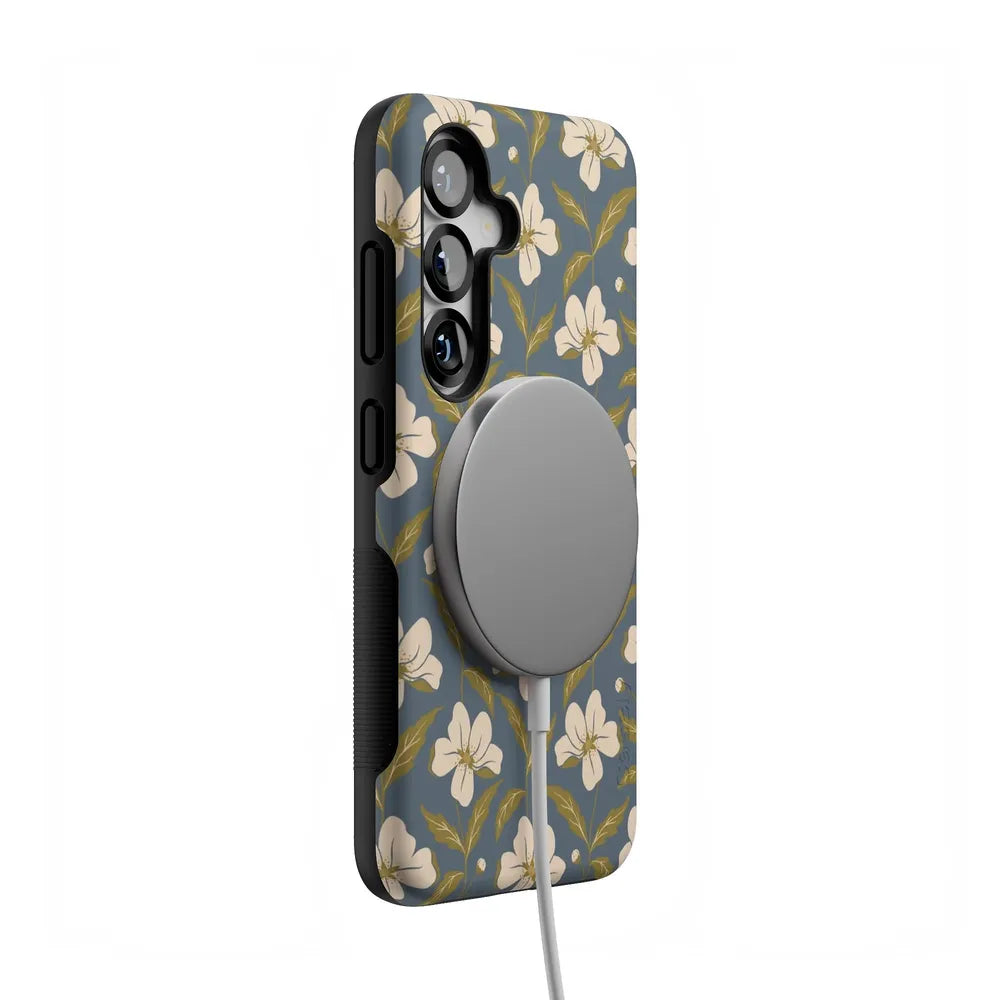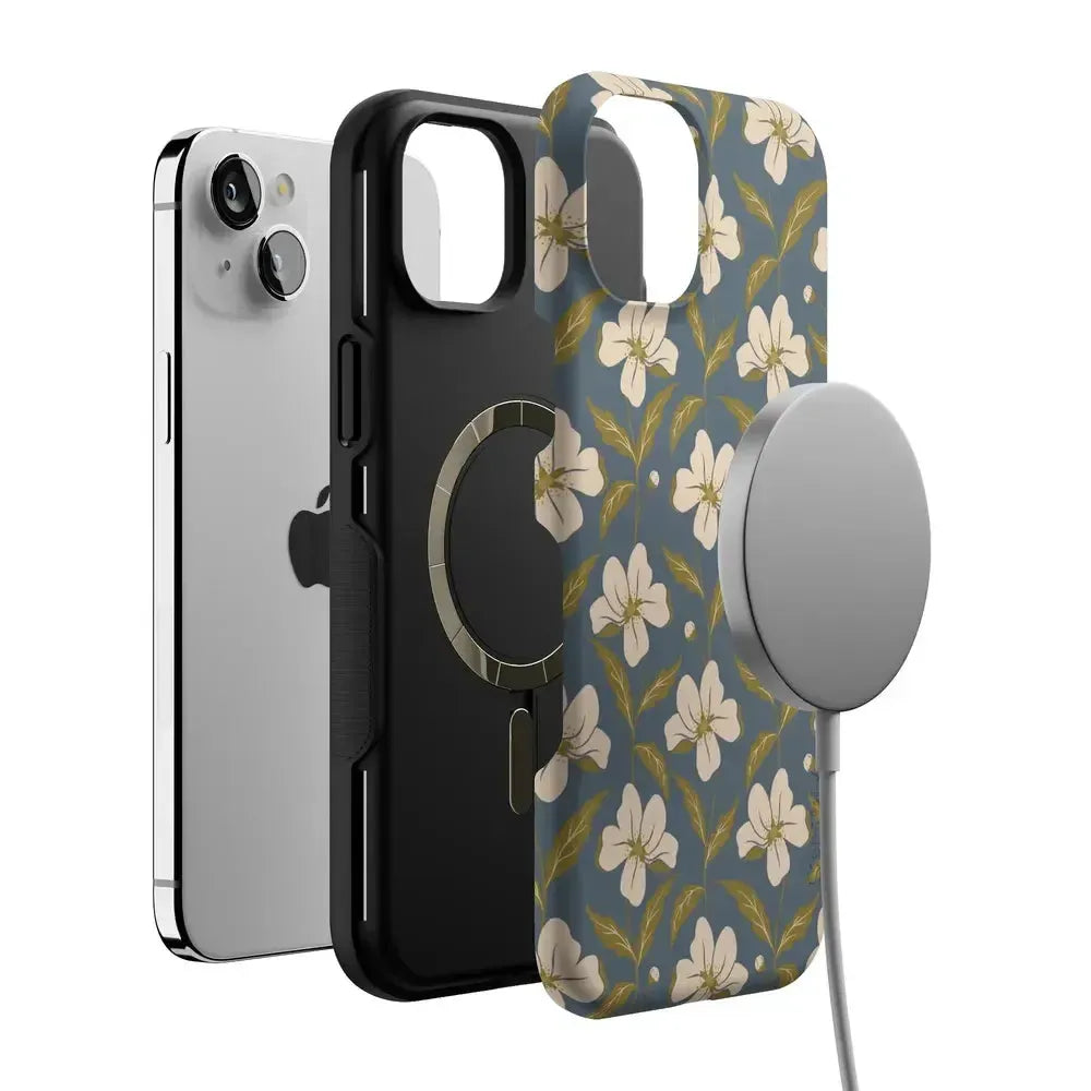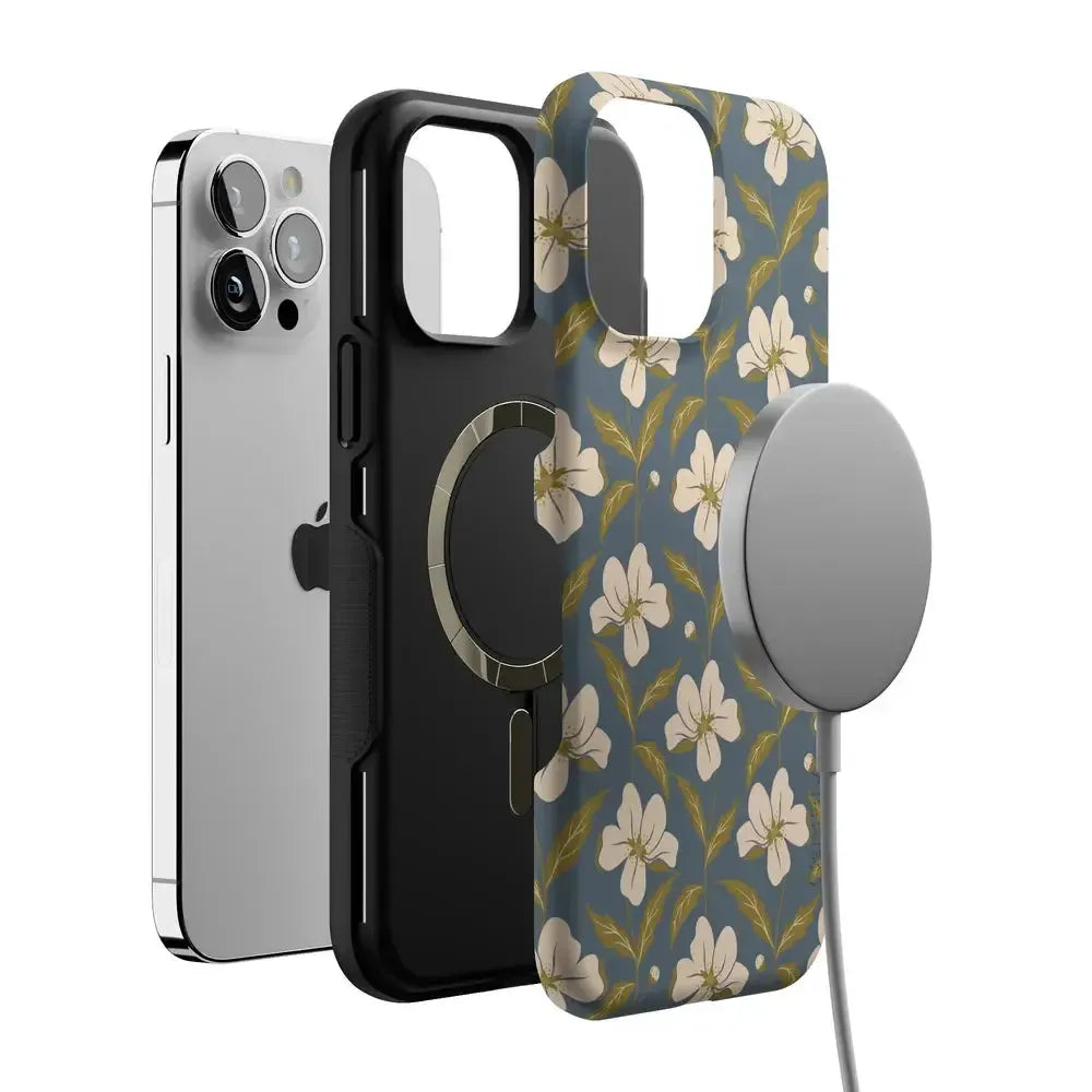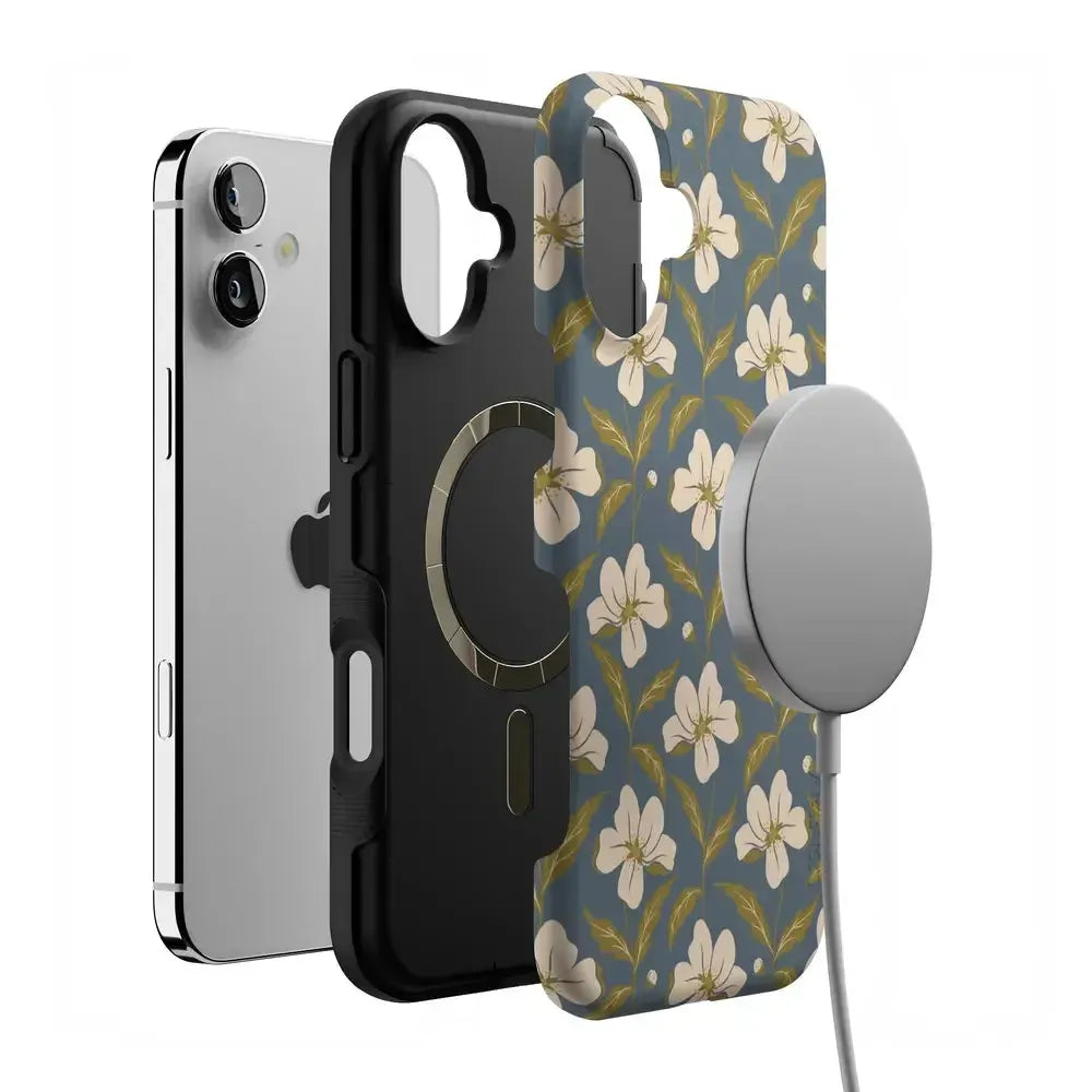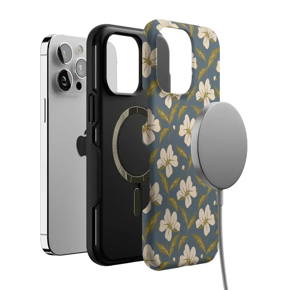 PSA: You can buy him flowers. The Lei'd Back phone case from the Boyfriend Collection is a modern take on a vintage classic. inspired by retro Hawaiian shirts and relaxed summer style. With a slate blue base and soft neutral floral blooms. this design is bold without being loud—perfect for guys who want something different but effortless.