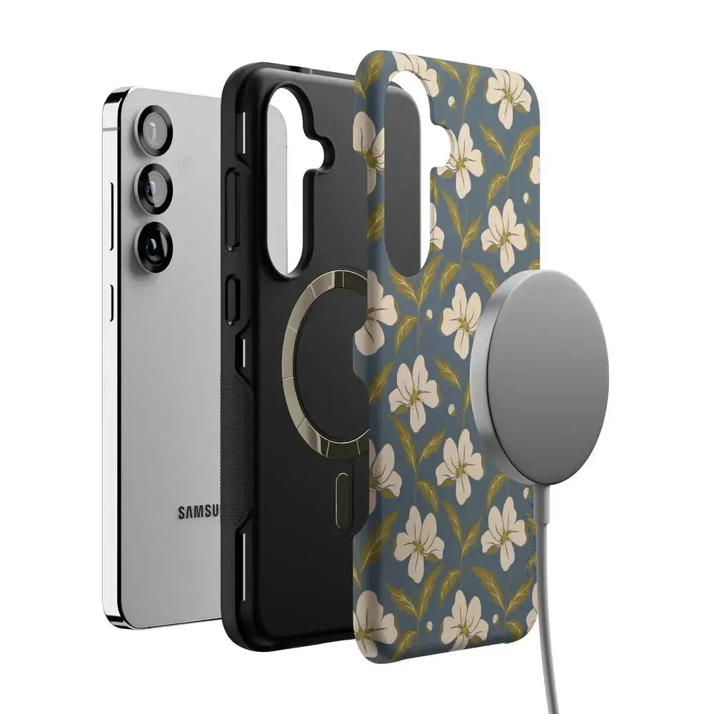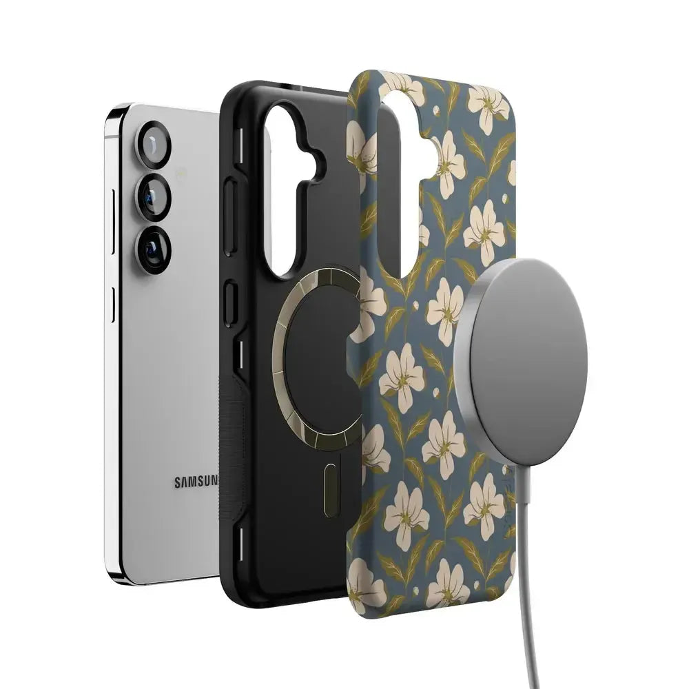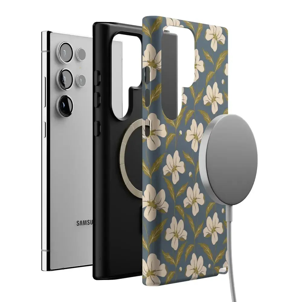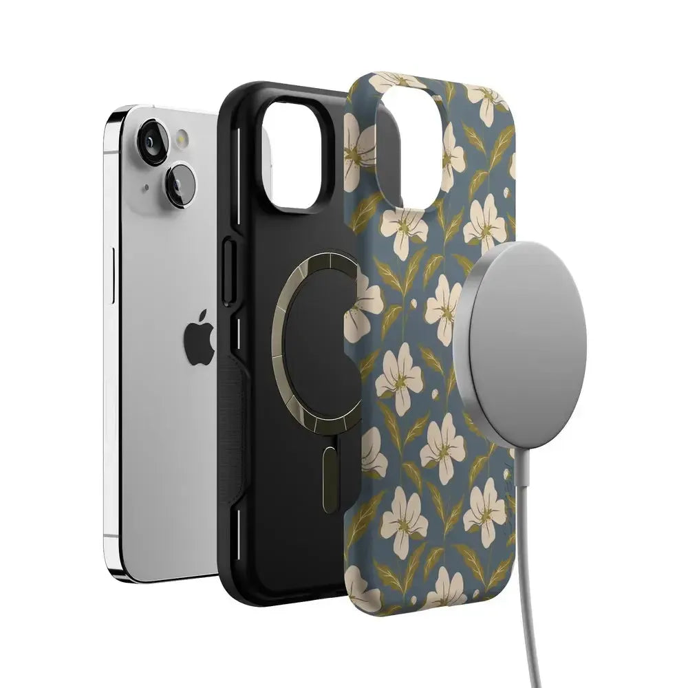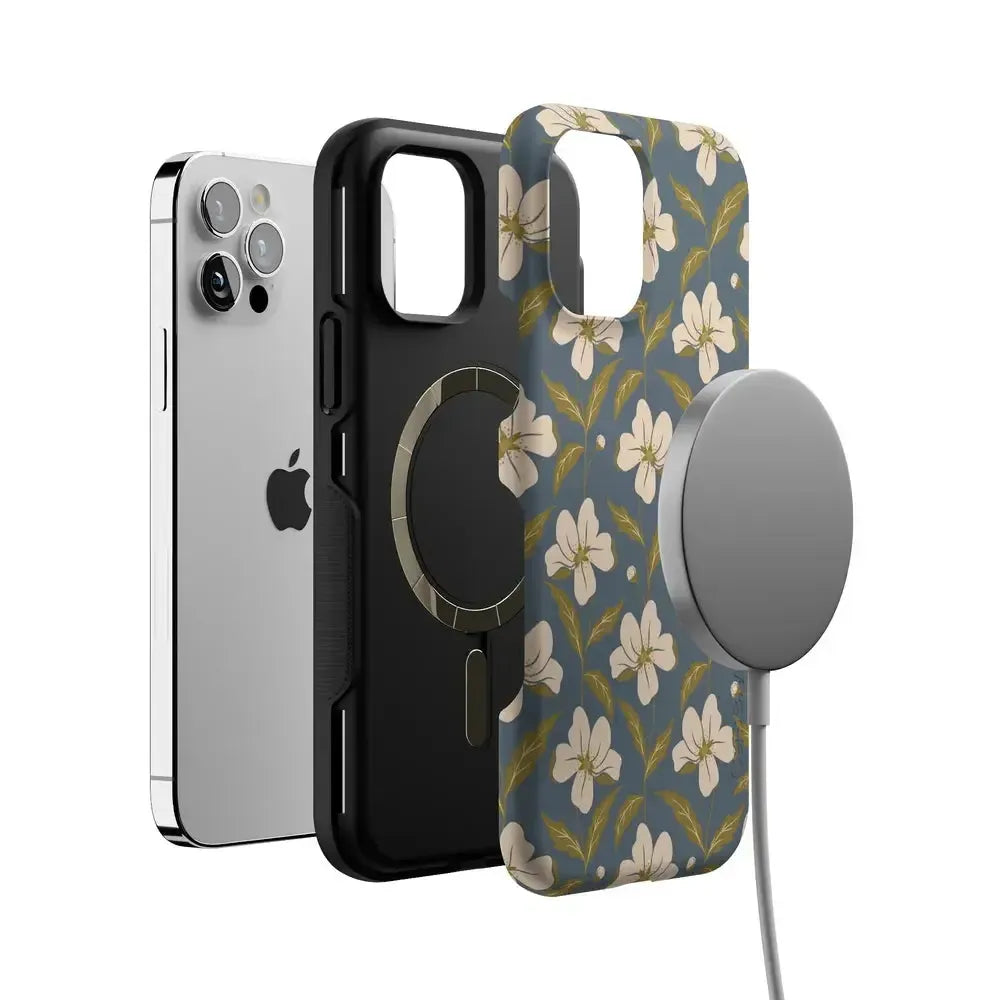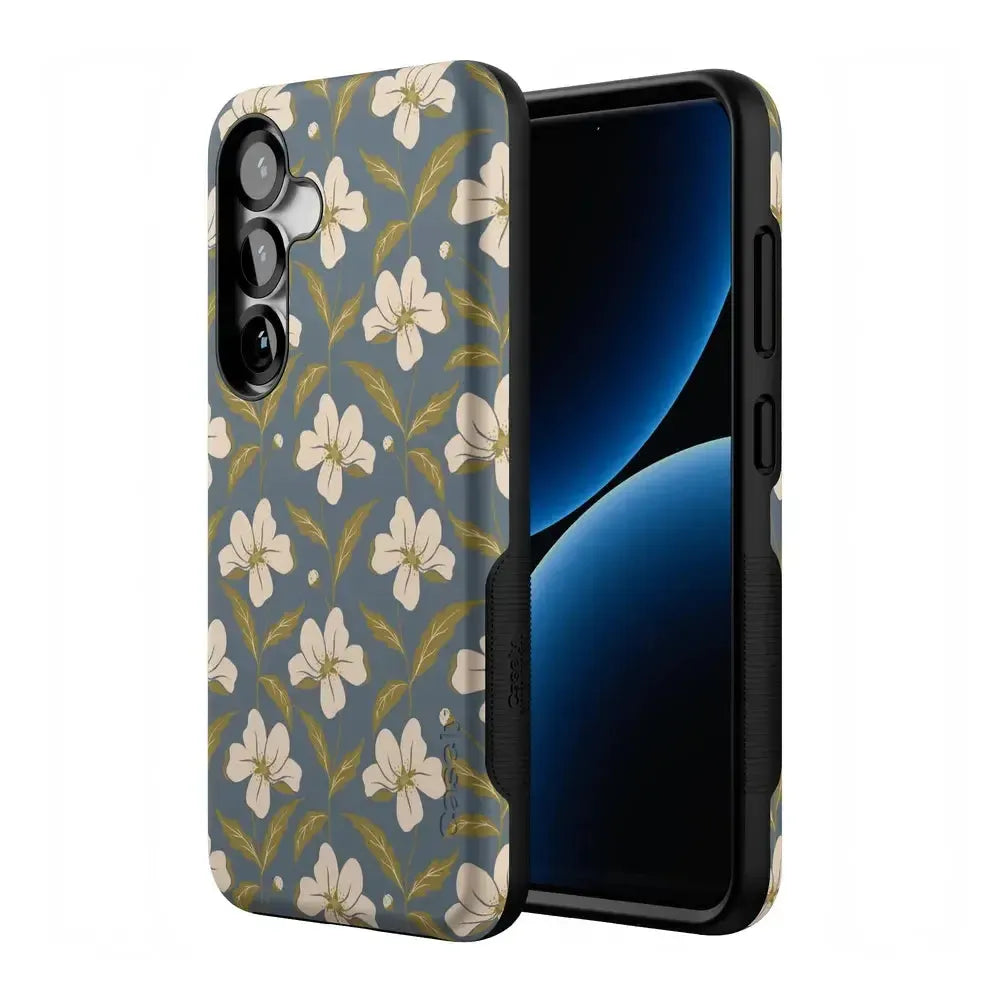 PSA: You can buy him flowers. The Lei'd Back phone case from the Boyfriend Collection is a modern take on a vintage classic. inspired by retro Hawaiian shirts and relaxed summer style. With a slate blue base and soft neutral floral blooms. this design is bold without being loud—perfect for guys who want something different but effortless.