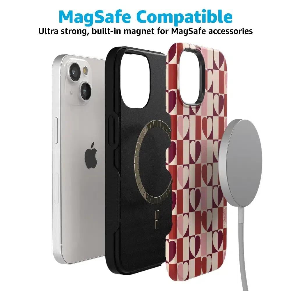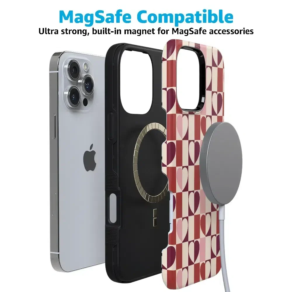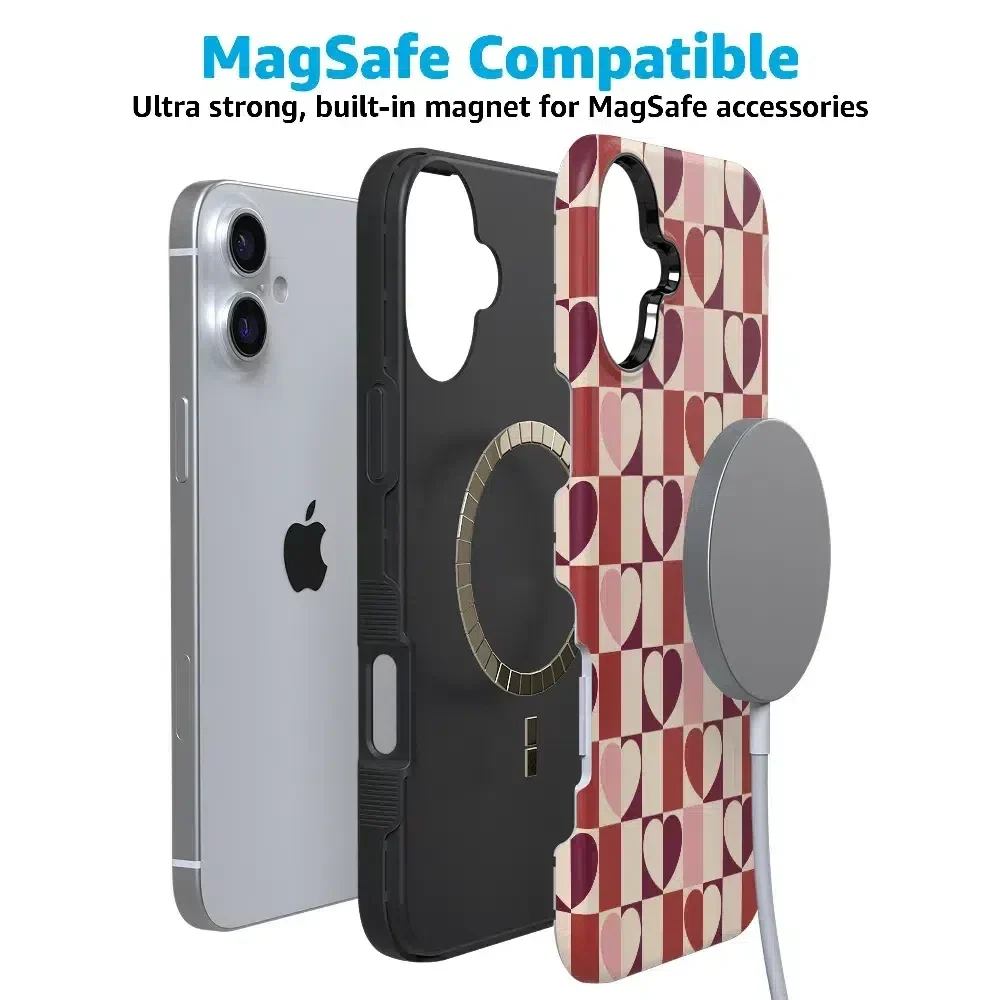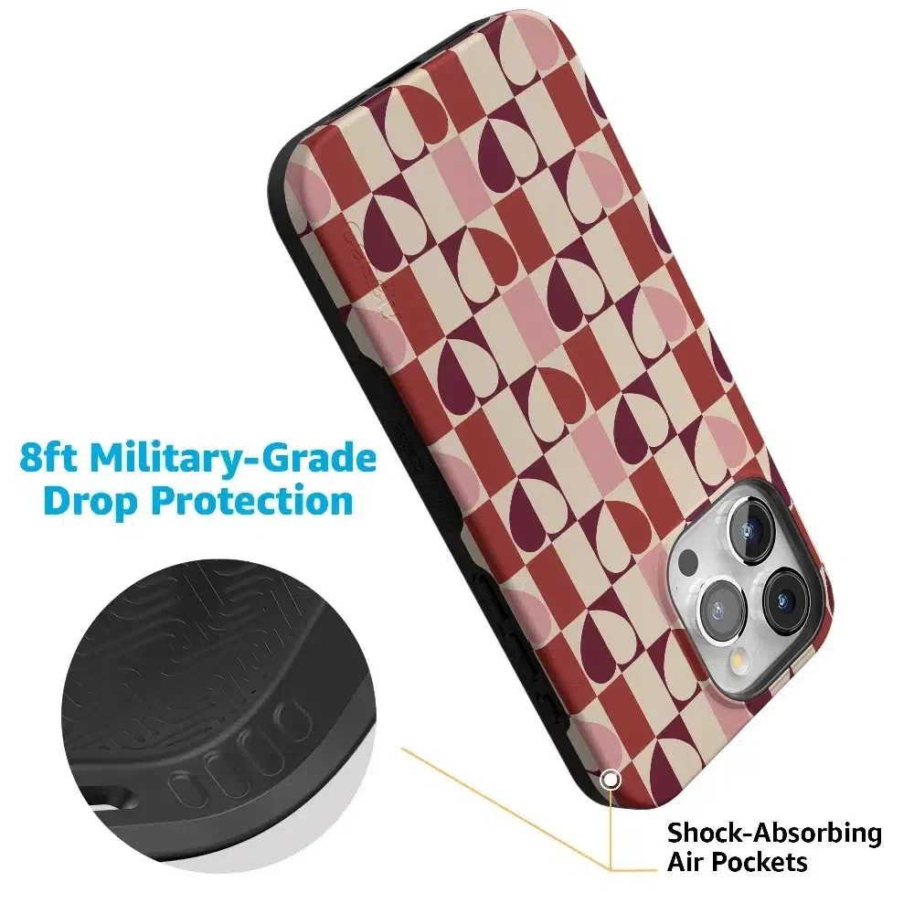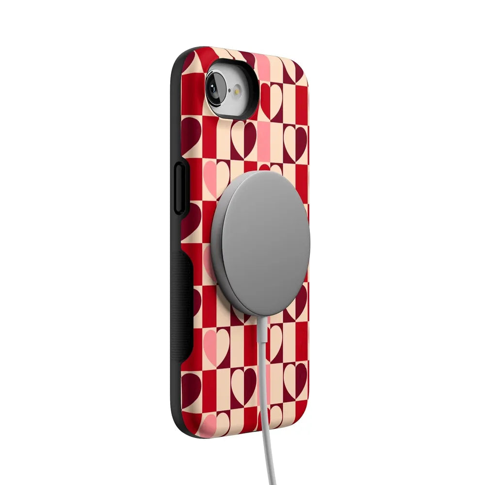 Channel retro vibes with the Love's a Game | Retro Hearts Case. Featuring a fun. checkered heart design in shades of pink and red. this case is a playful nod to vintage styles with a modern twist.