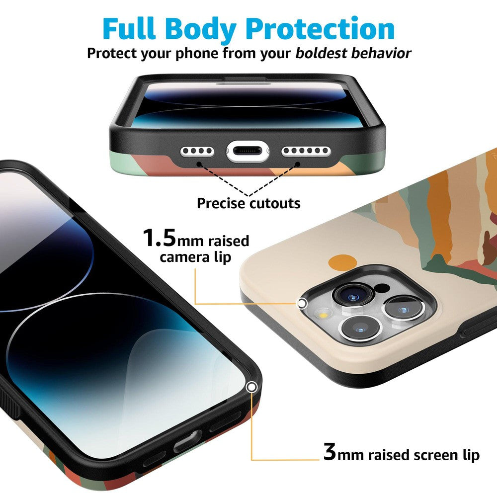Although the design itself is simple. the numerous earth tones used throughout the winding mountaintop take it to a new level. It's the perfect balance between a bold design and a muted aesthetic. meaning it will fit just about any vibe you match it with. Not only that. but this case is tough. All of our cases are built from durable materials to make them highly shock-resistant. What's not to love?