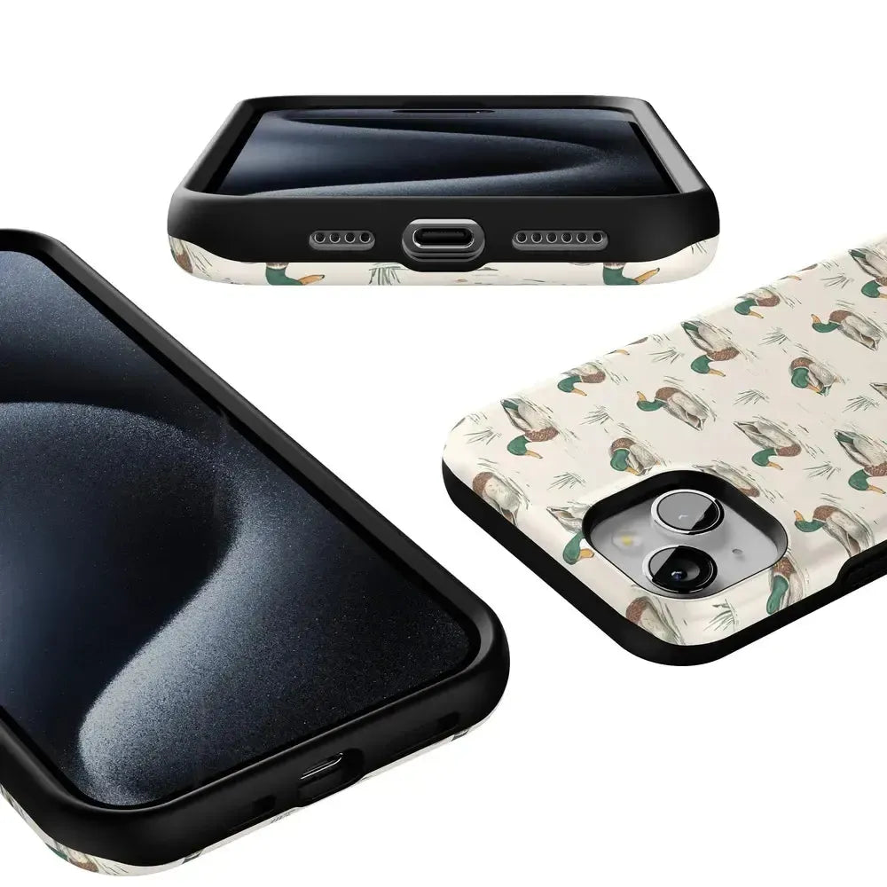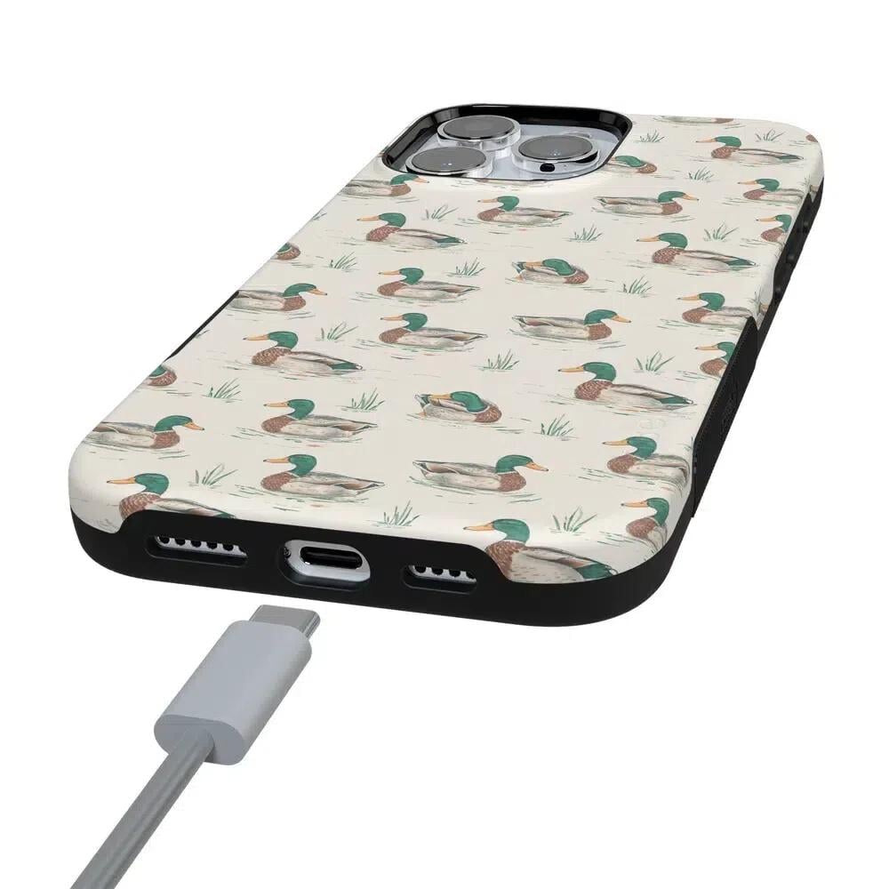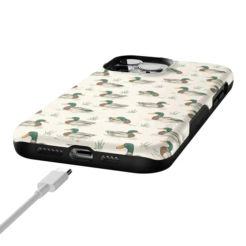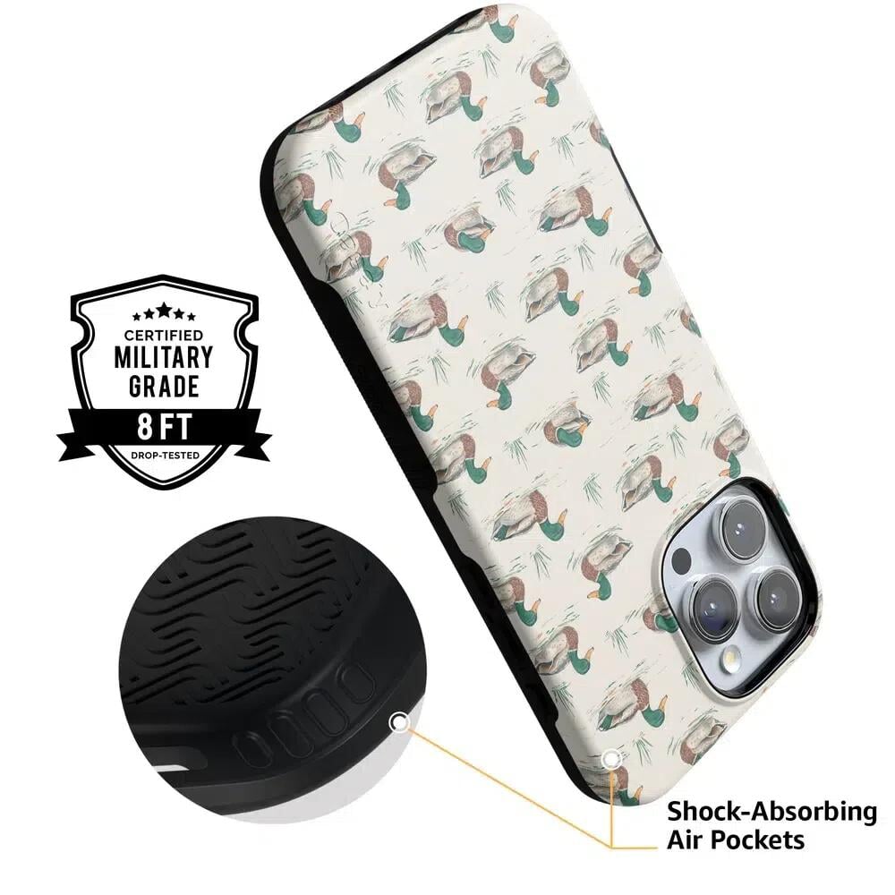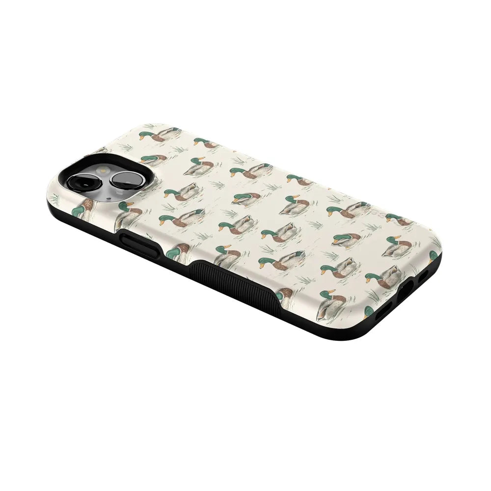 Bring a bit of countryside charm to your everyday carry with the Mallard & Co. phone case from our all-new Boyfriend Collection. Inspired by vintage sporting prints and laid-back cabin weekends. this case blends classic Americana with modern protection. A repeating mallard duck motif floats across a soft beige background. giving it that effortlessly cool. borrowed-from-him-but-better vibe.