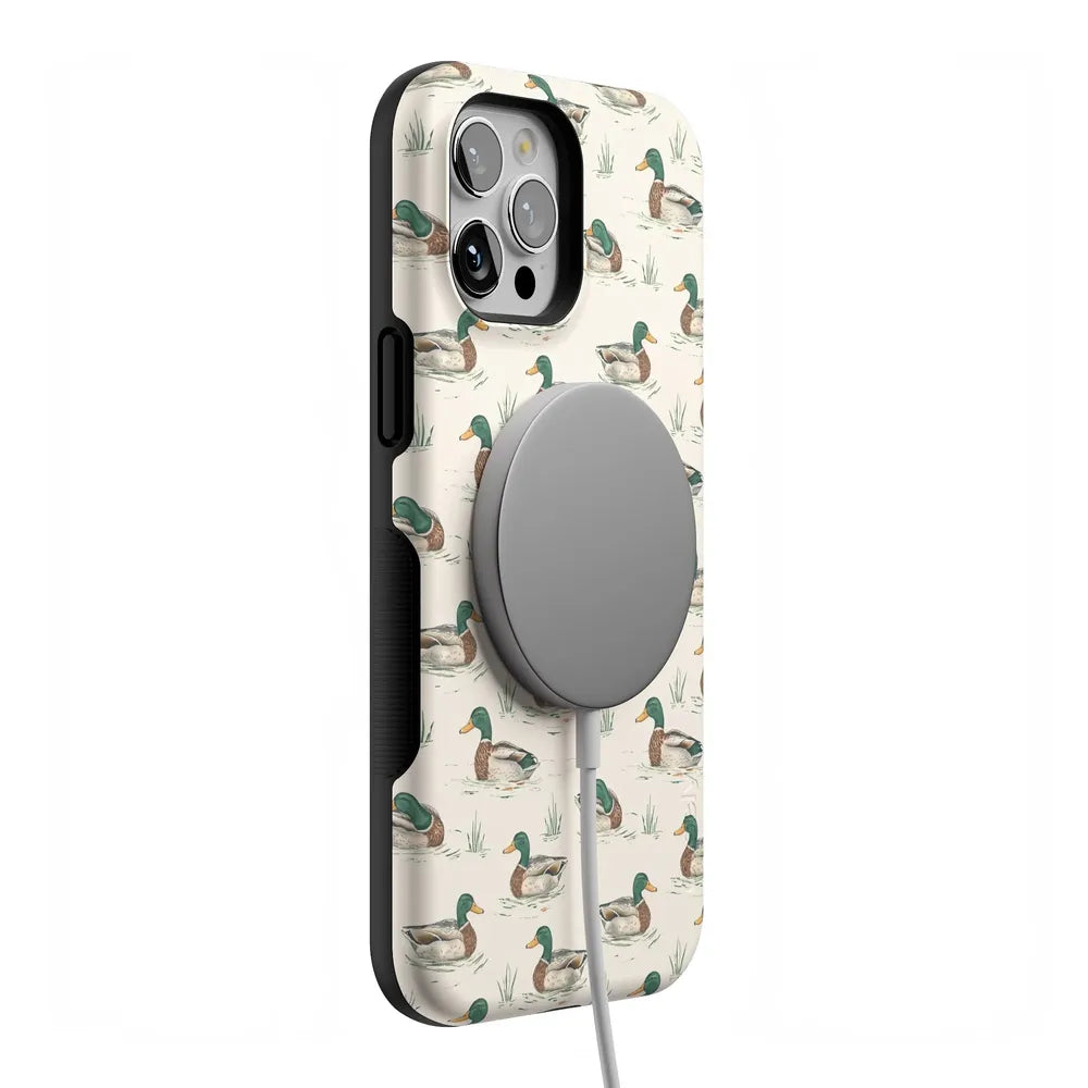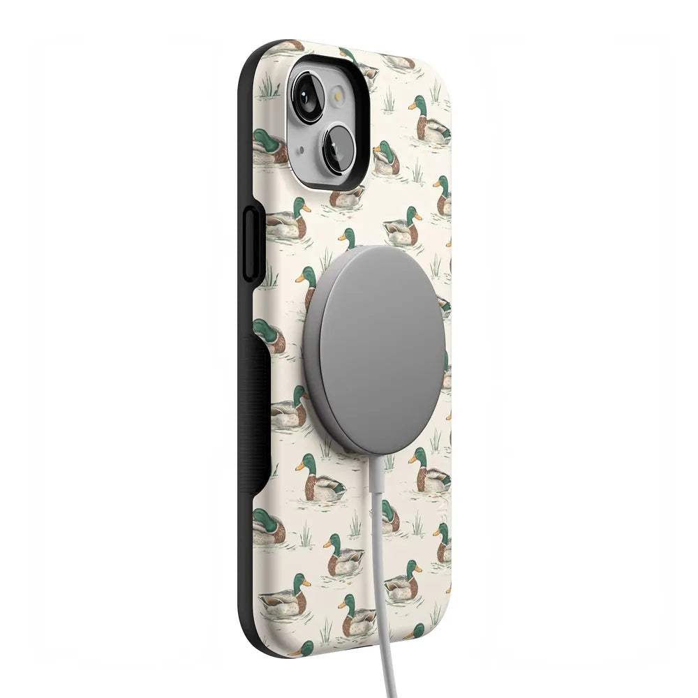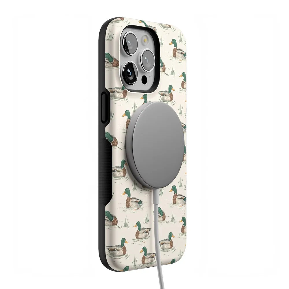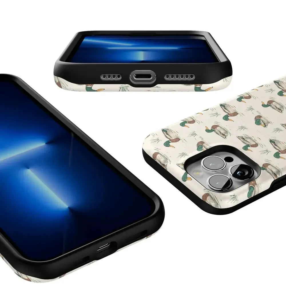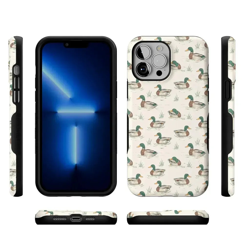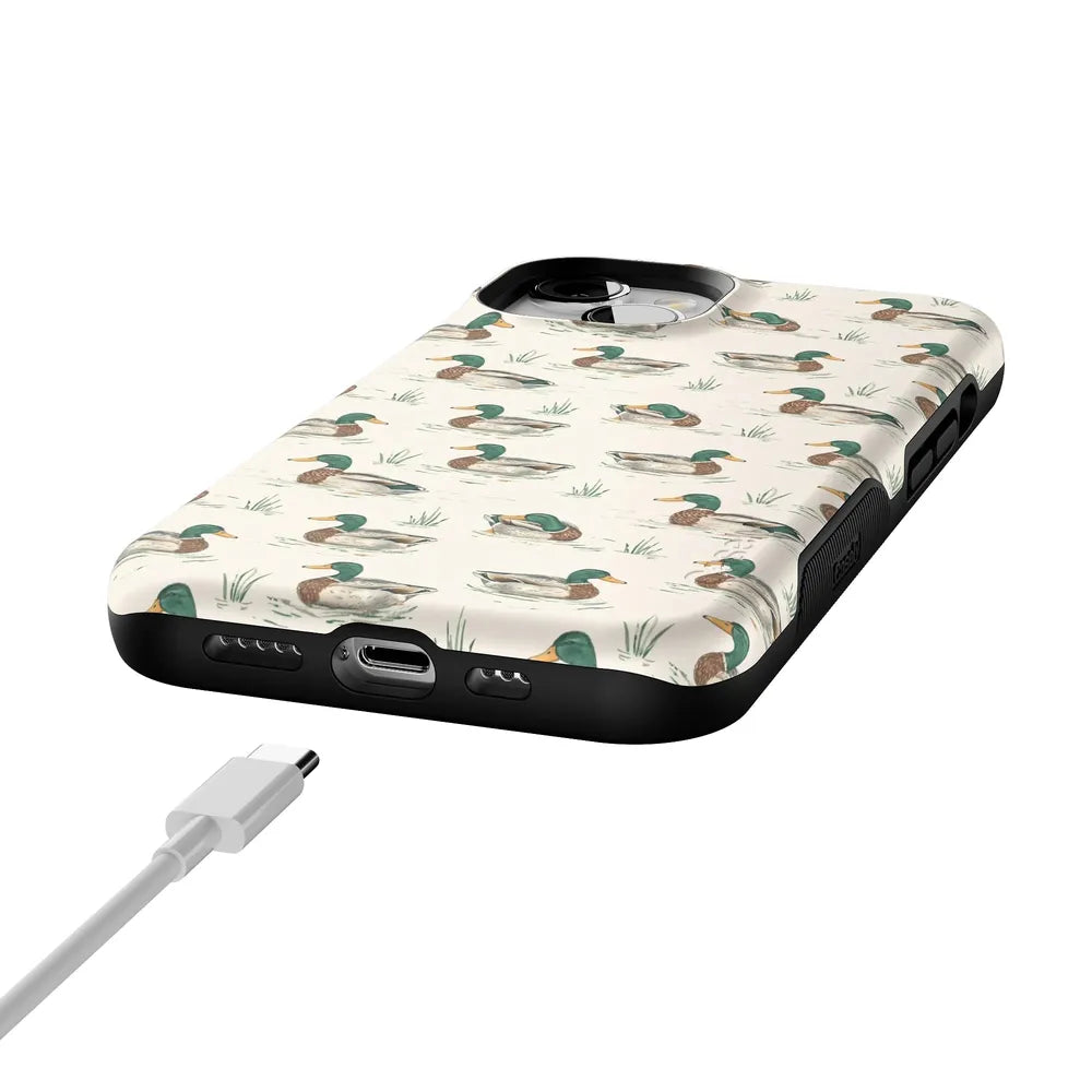 Bring a bit of countryside charm to your everyday carry with the Mallard & Co. phone case from our all-new Boyfriend Collection. Inspired by vintage sporting prints and laid-back cabin weekends. this case blends classic Americana with modern protection. A repeating mallard duck motif floats across a soft beige background. giving it that effortlessly cool. borrowed-from-him-but-better vibe.