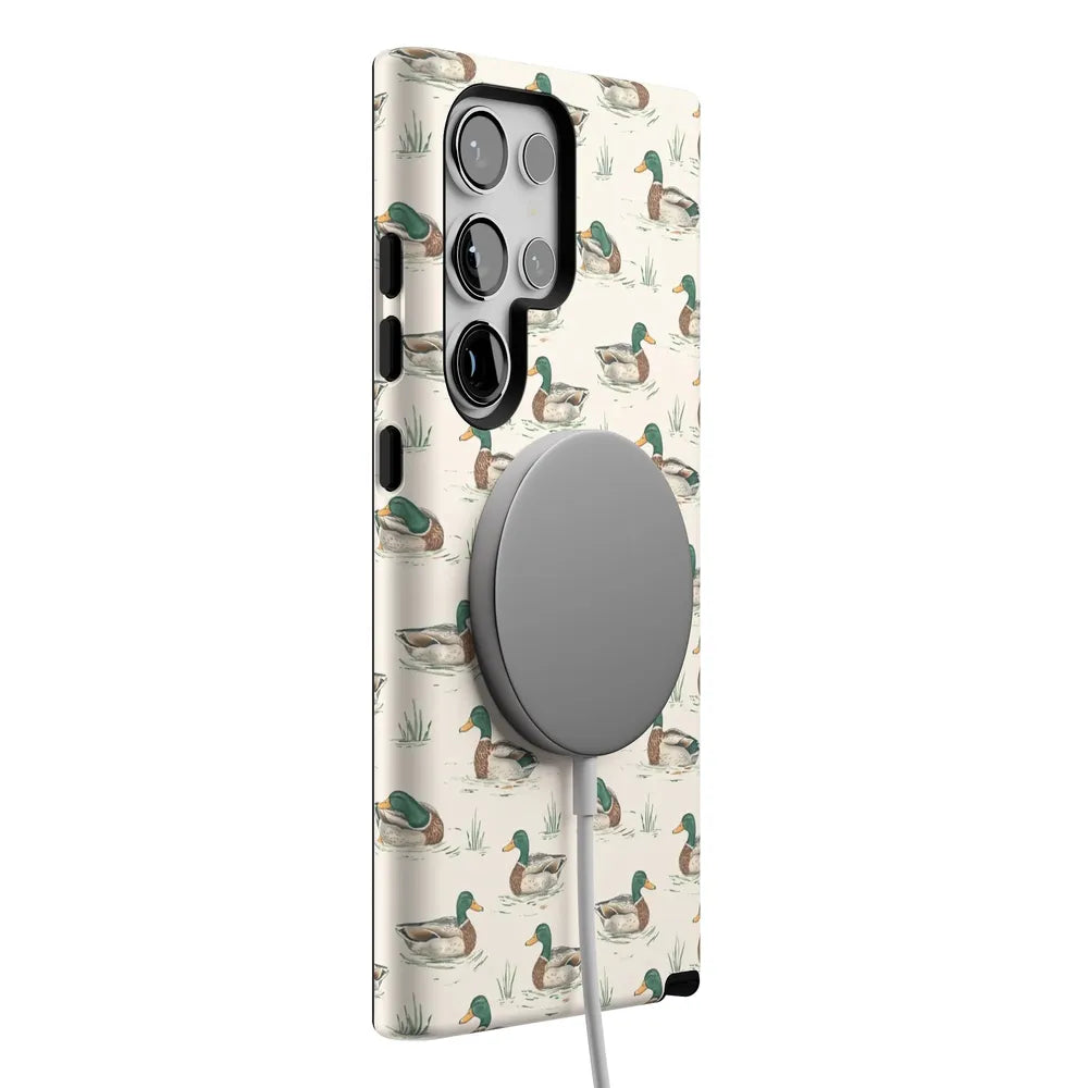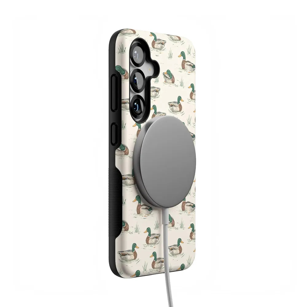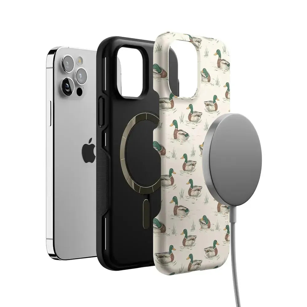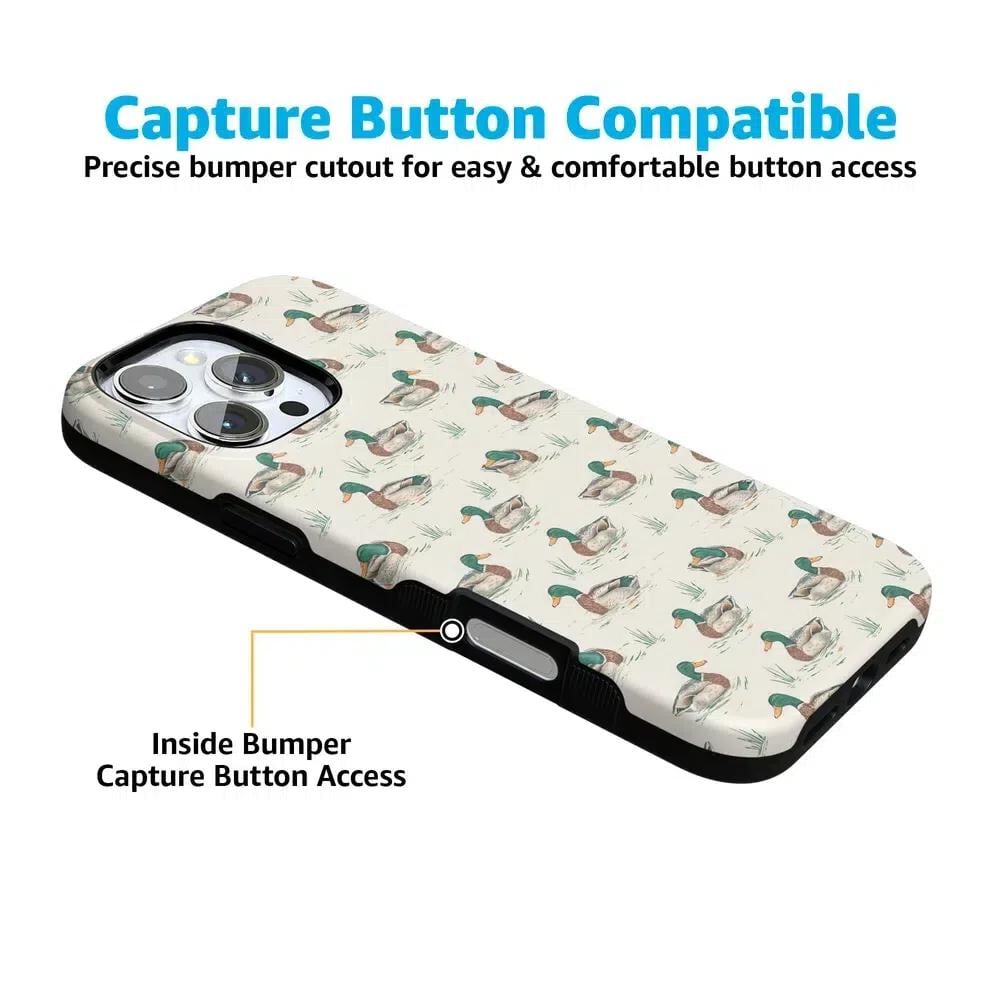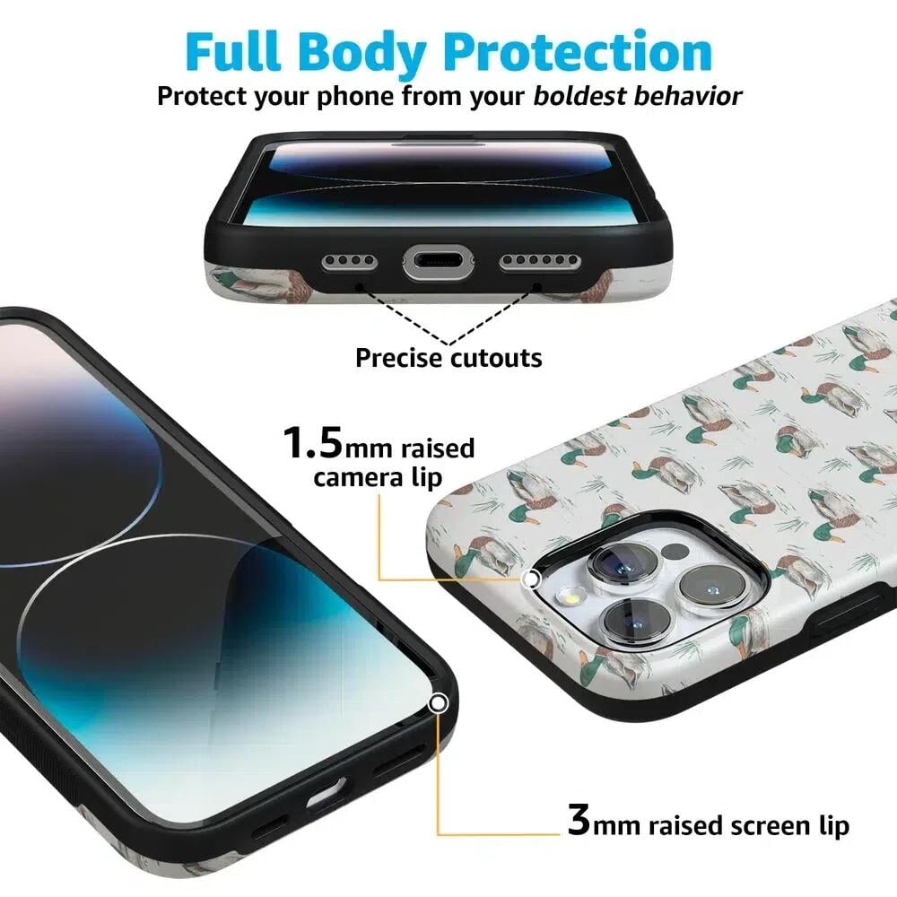 Bring a bit of countryside charm to your everyday carry with the Mallard & Co. phone case from our all-new Boyfriend Collection. Inspired by vintage sporting prints and laid-back cabin weekends. this case blends classic Americana with modern protection. A repeating mallard duck motif floats across a soft beige background. giving it that effortlessly cool. borrowed-from-him-but-better vibe.