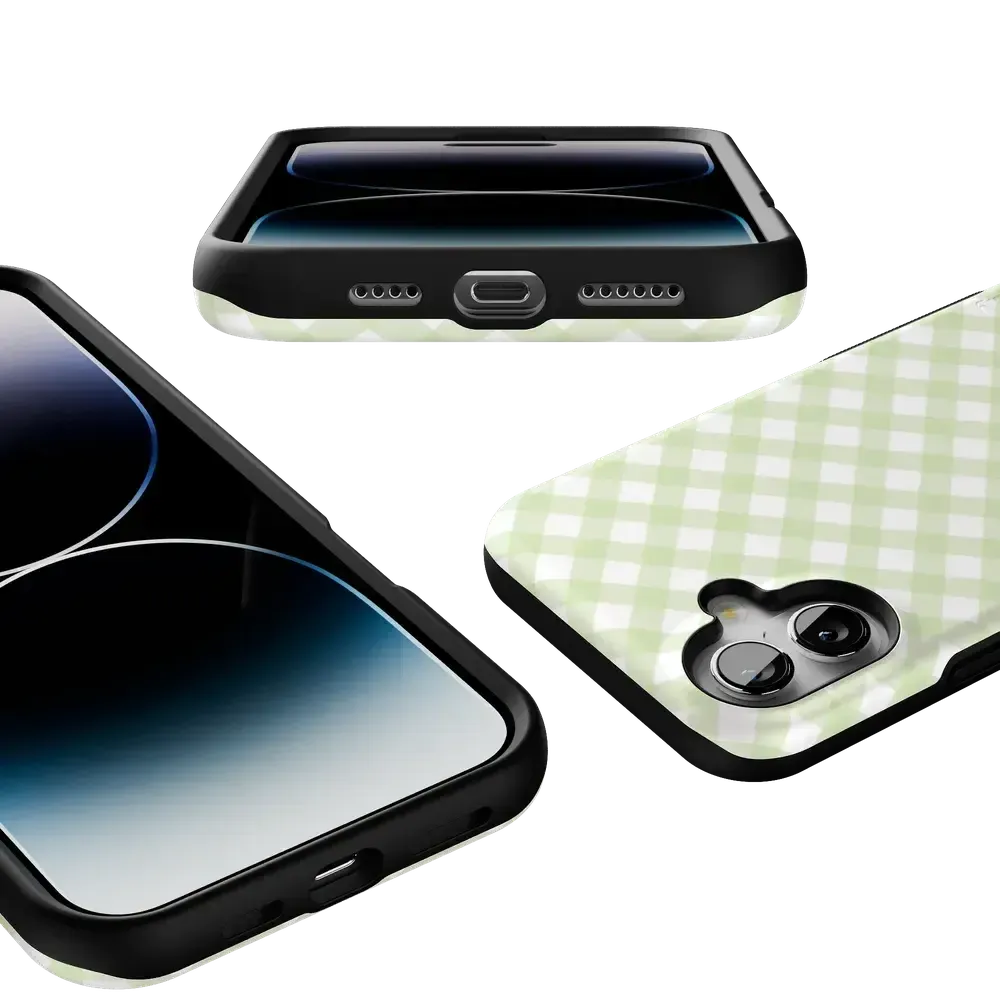 Freshen up your phone with the Mint Lattice | Sunday Best Case. a charming blend of vintage-inspired gingham and modern style. Part of our Sunday Best Collection. this soft green checkered design captures the essence of spring picnics. Easter brunches. and breezy afternoons. With its timeless lattice pattern. this case adds a subtle yet stylish touch to your everyday look. Perfect for those who love classic prints with a fresh twist. it's your go-to springtime accessory.