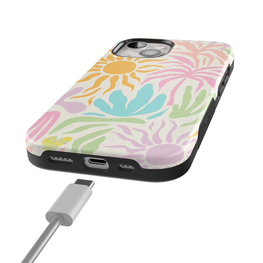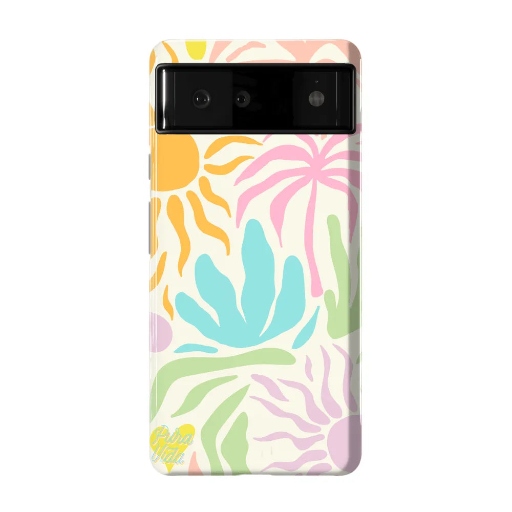 Step into your own personal Oasis with this vibrant phone case from the Pura Vida x Casely collab! Featuring bold. tropical florals and playful sunbursts in dreamy pastel hues. this design is the perfect escape from the everyday. Whether you're beachside or just bringing the vacation vibes to your daily routine. this case is a statement piece you won't want to miss.