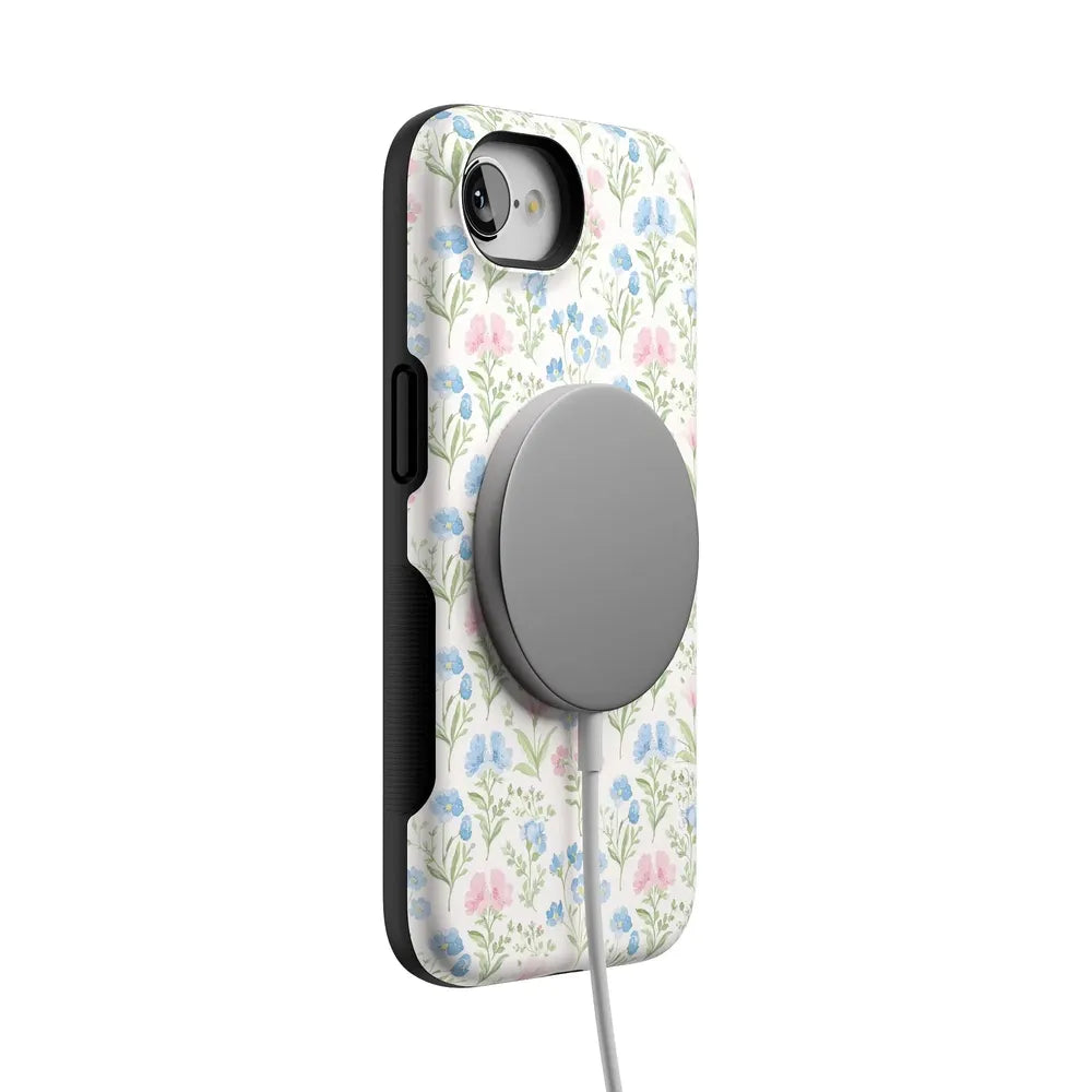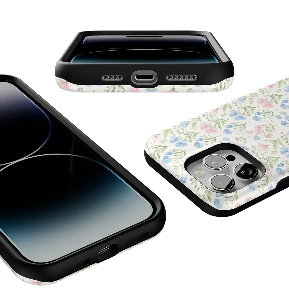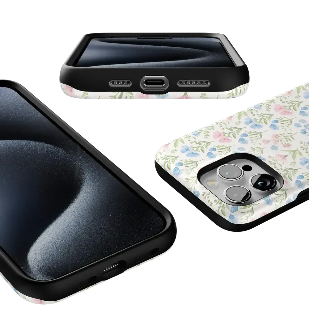 Step into spring with the Pastel Garden | Sunday Best Case. a fresh take on vintage floral elegance. Part of our Sunday Best Collection. this design captures the essence of Easter and springtime gatherings with delicate pink and blue blossoms on a soft cream background. Perfect for those who love a classic. feminine aesthetic. this case brings a breath of fresh air to your phone while offering everyday protection. Whether you're dressing up for a special occasion or just embracing the season. this case is your perfect spring accessory.
