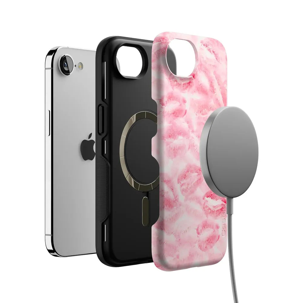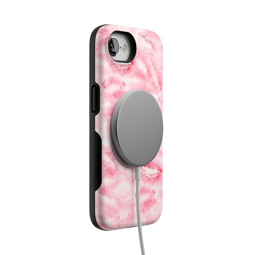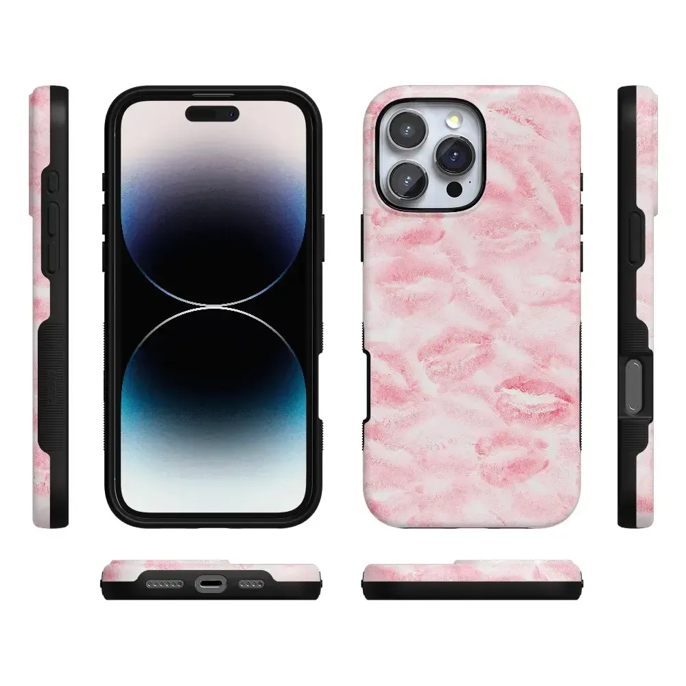 Wear your heart on your phone with the Sealed with a Kiss | Pink Lipstick Case. Featuring playful pink lipstick prints against a soft background. this design adds a flirty and romantic vibe to your everyday look.