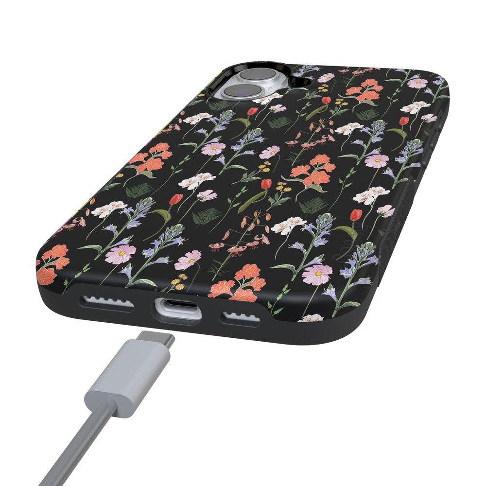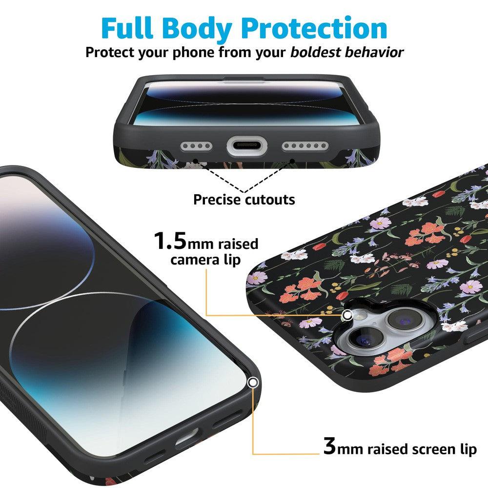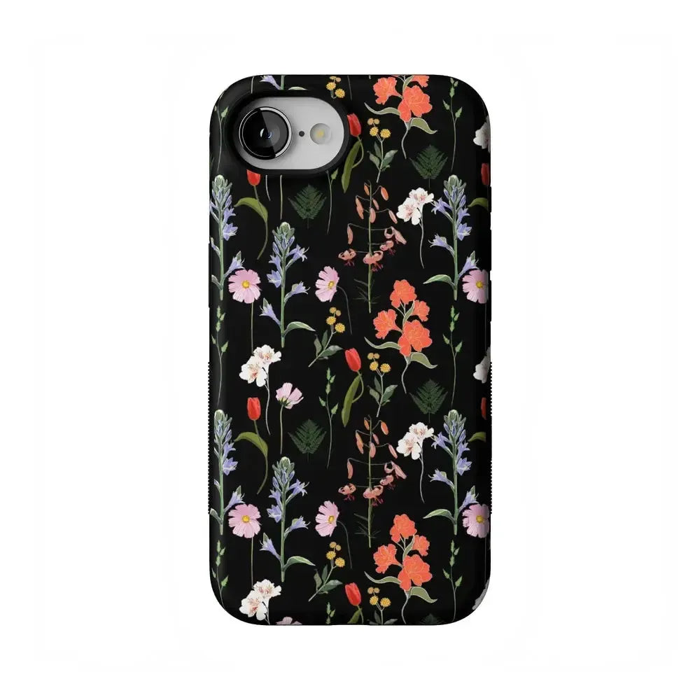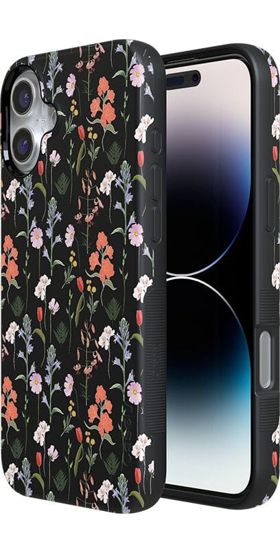 This lush and vibrant case is offered in both the Bold and Classic collection and aptly so. With a stark black background. this case is sure to look chic and elegant for any occasion. as well as flirty and fun with the floral details. The patterning and variety of flowers also add to its flirty. coquettish appeal! The black background also makes the Secret Garden Mixed Floral cover very versatile and easy to match with any outfit. This case is a great accessory for a night out with the girls or as a first date accessory with a sweet. girly outfits. But don't let the frilly style mislead you. The floral aesthetic doesn't reduce its ability to protect your phone. With specifically rounded edges to guard your phone screen and volume buttons. you'll never have to worry if you're sacrificing protection for looks. This phone case can be purchased for all iPhones 6 and up. the latest Samsung models. and the latest Note models.