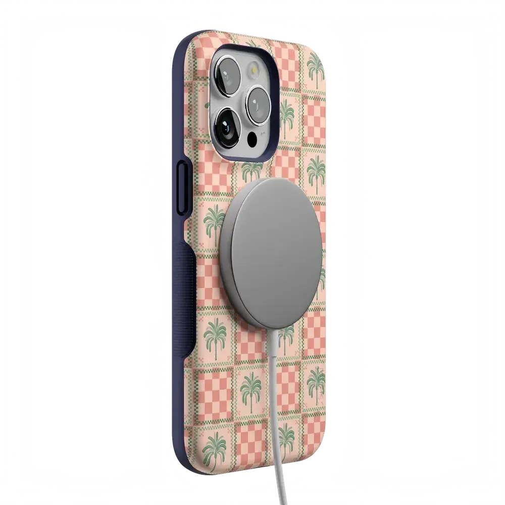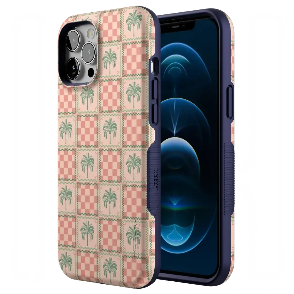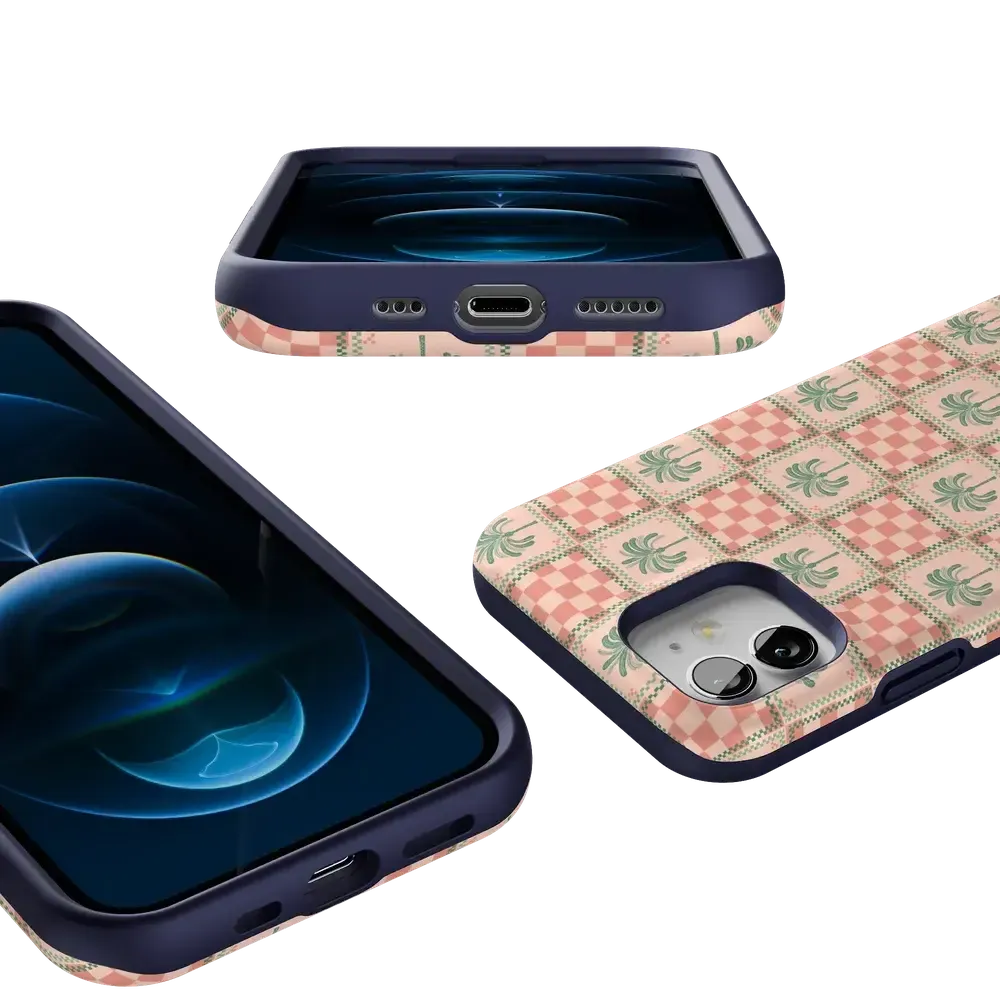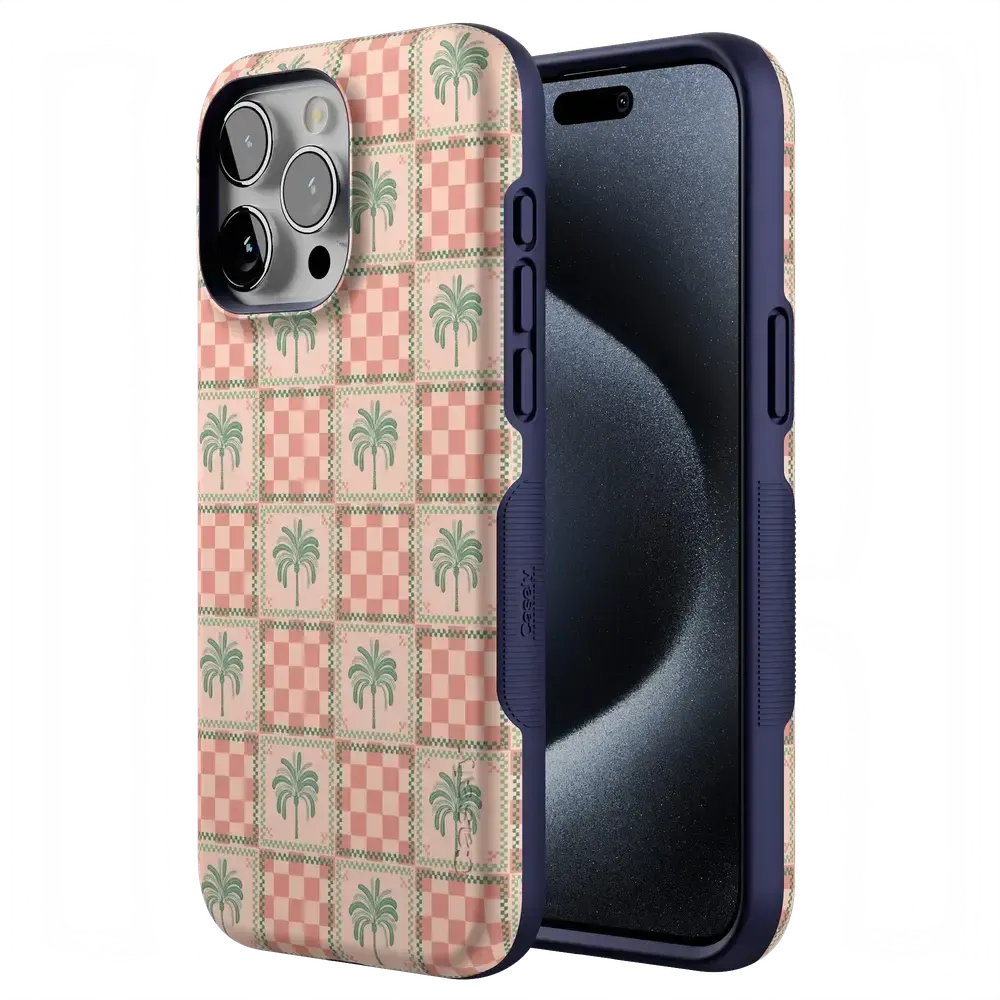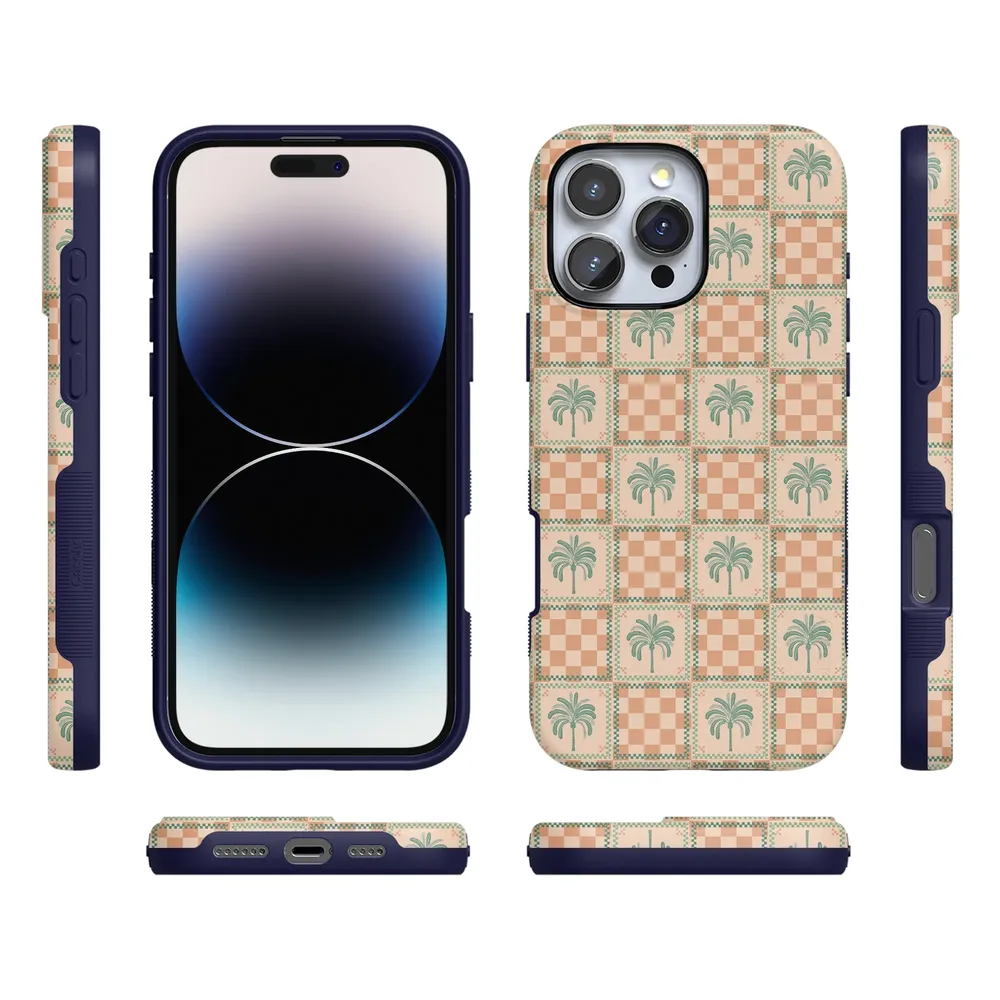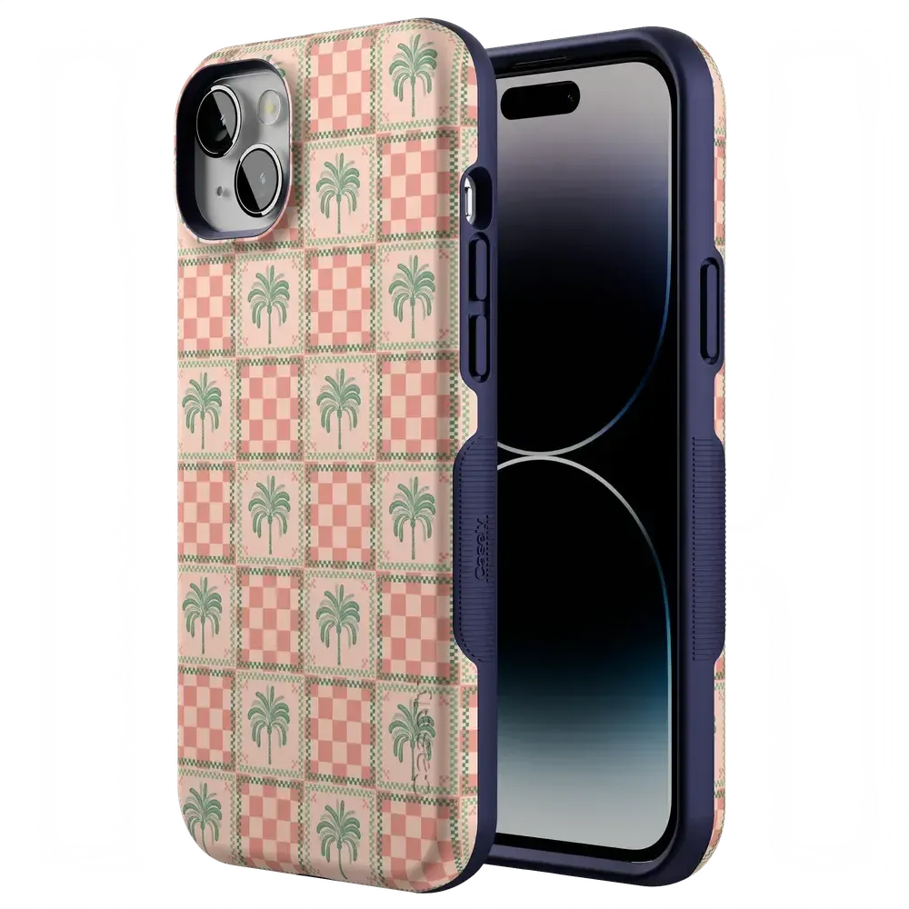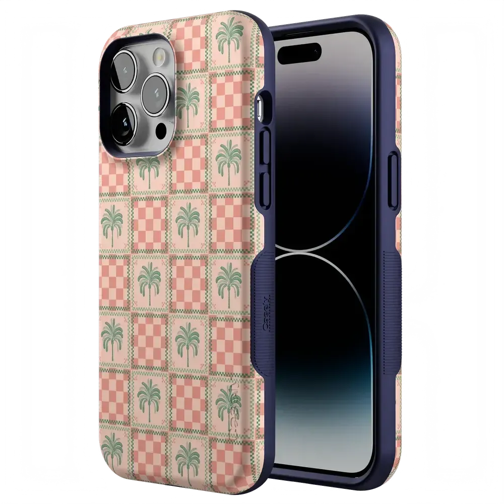 The Social Club Case is the ultimate throwback to retro resort days—think checkered pool towels. striped umbrellas. and that perfect shade of pink haze at golden hour. With a repeating grid of soft peach checks and tiny mint green palm trees. this playful design brings a nostalgic. vacation-all-the-time feel to your everyday. It's a little vintage. a little preppy. and 100% summer-ready.