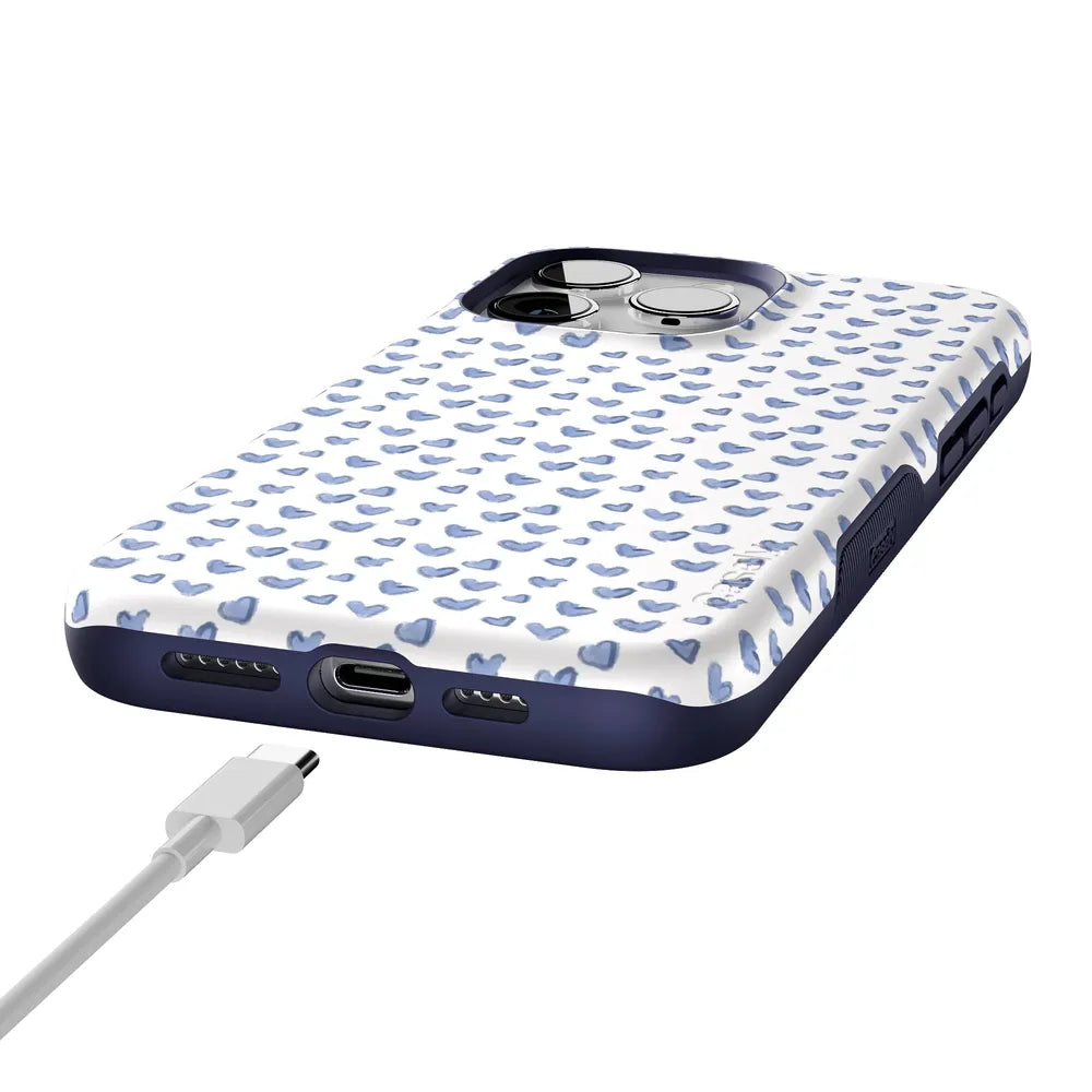 Let your phone steal hearts with the adorable Lovebug | Blue Hearts Case. Featuring a charming pattern of soft blue hearts on a clean white background. this case brings a sweet and playful vibe to your everyday look. Designed to protect your phone while adding a touch of fun. this case is the perfect blend of style and function.
